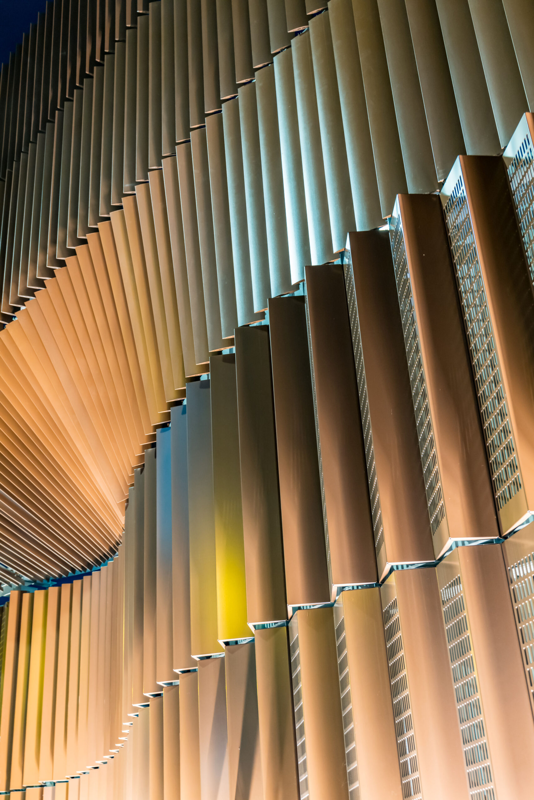This intervention combines seamlessly architecture with art and landscape architecture with lighting design to provide urban presence. While architecture provides the structural canvas, an interplay of dynamic patterns is woven into the design. The screen is experienced differently from the day to the nigh, and during these times there are differences in the patterns and silhouettes experienced.