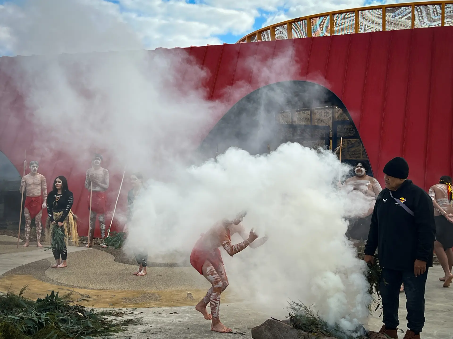 The design – from the building to the landscape – has all been planned with community. With engagement happening over 12 months, talking to over 1,000 people – what they would like to see from a building like Munarra. As you’re walking through the Centre, you’ll see key aspects of art, culture and landscape from broad range of Yorta Yorta Country – from the Warby Ranges with the rocks to the Barmah National Park with the wetlands. These elements have all been put into this building. It showcases Yorta Yorta culture and people to the regions, to the nation and internationally.