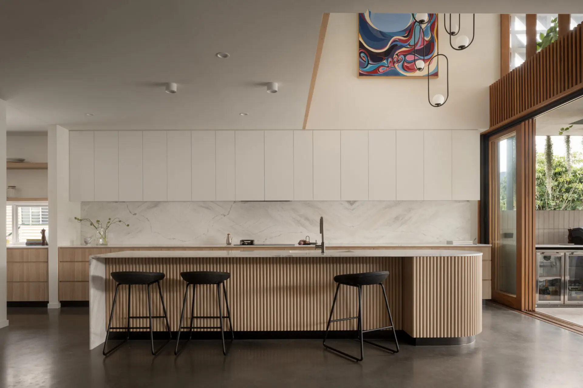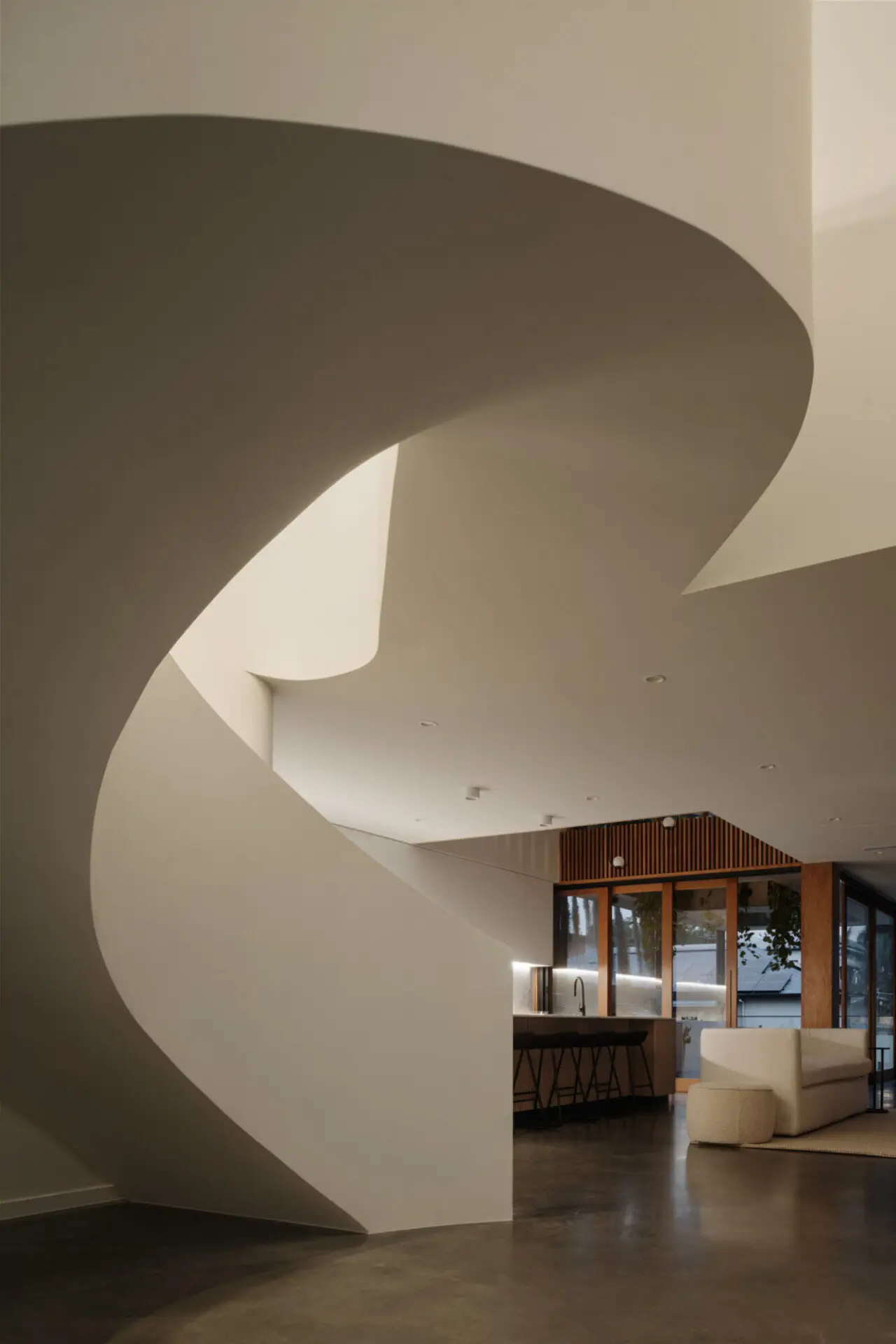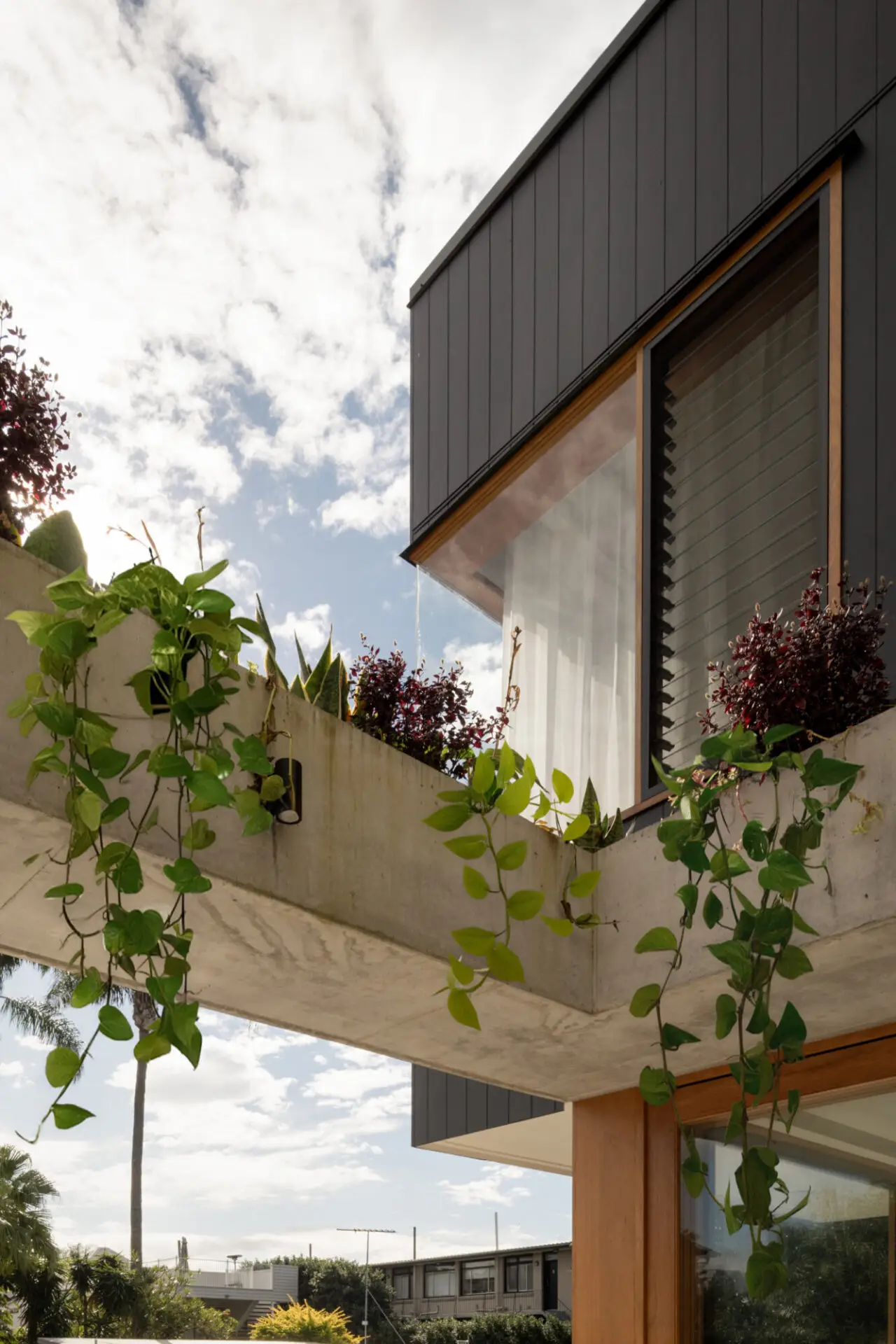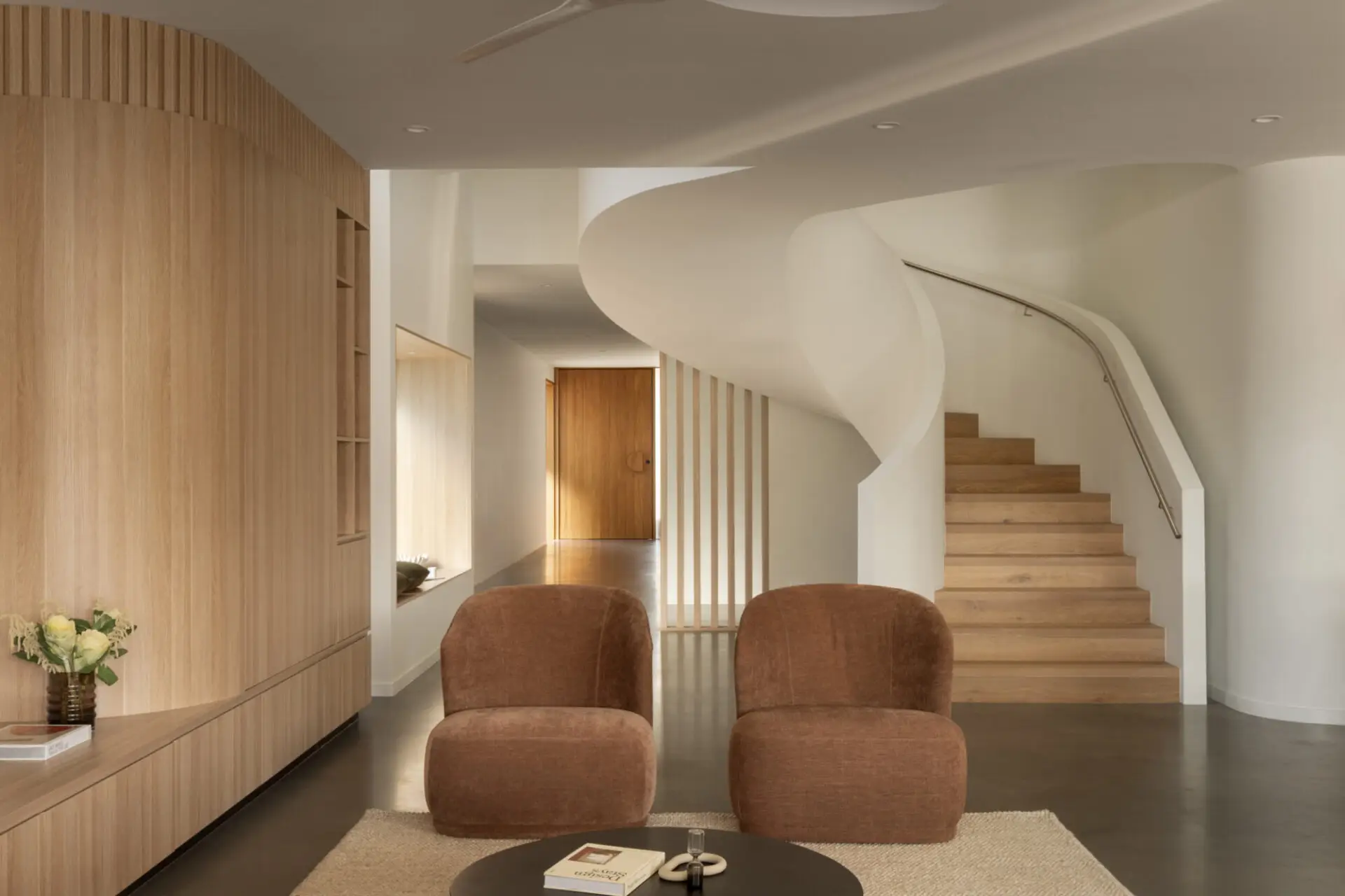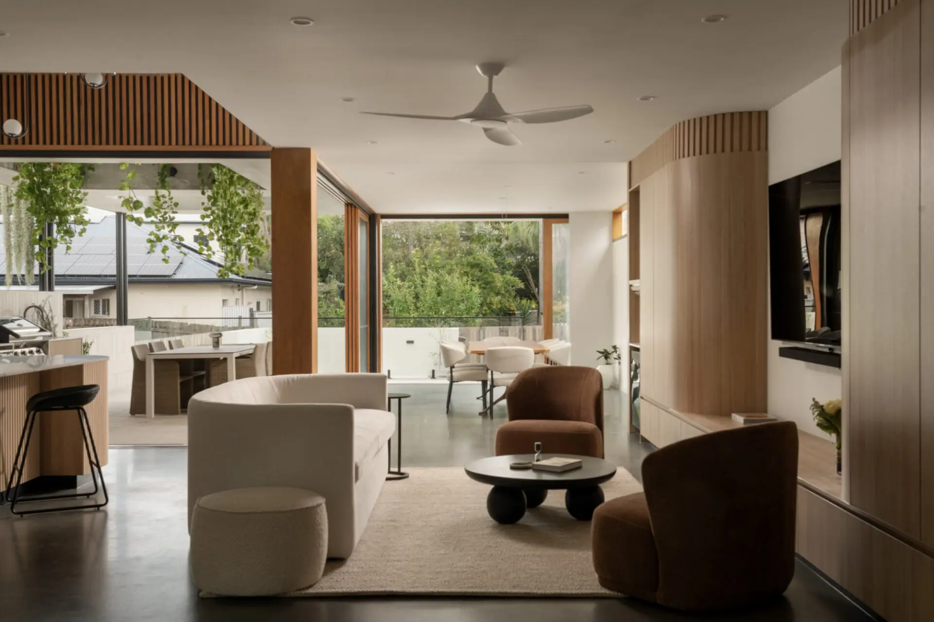 Located in the heart of New Farm, this project reimagines a pre-1946 cottage for contemporary family living through careful layering of the old and new. A contemporary extension below and to the rear preserves the home’s heritage character while introducing a refined modern sophistication. The double-height living space forms the heart of the home, celebrating light and spatial generosity. An elevated garden featuring hanging planters and a sculptural ceramic screen filters the light to create an ever-changing pattern of shade throughout the day. Natural timbers are paired with polished concrete to balance warmth and durability, anchored by a sculptural staircase which defines the interior. Ultimately, the project responds to the client’s brief by creating a home which is generous, resilient, and deeply connected to place. A contemporary family residence which proudly honors its past while embracing an elevated subtropical way of living.