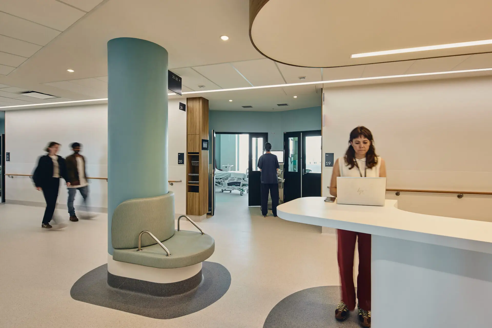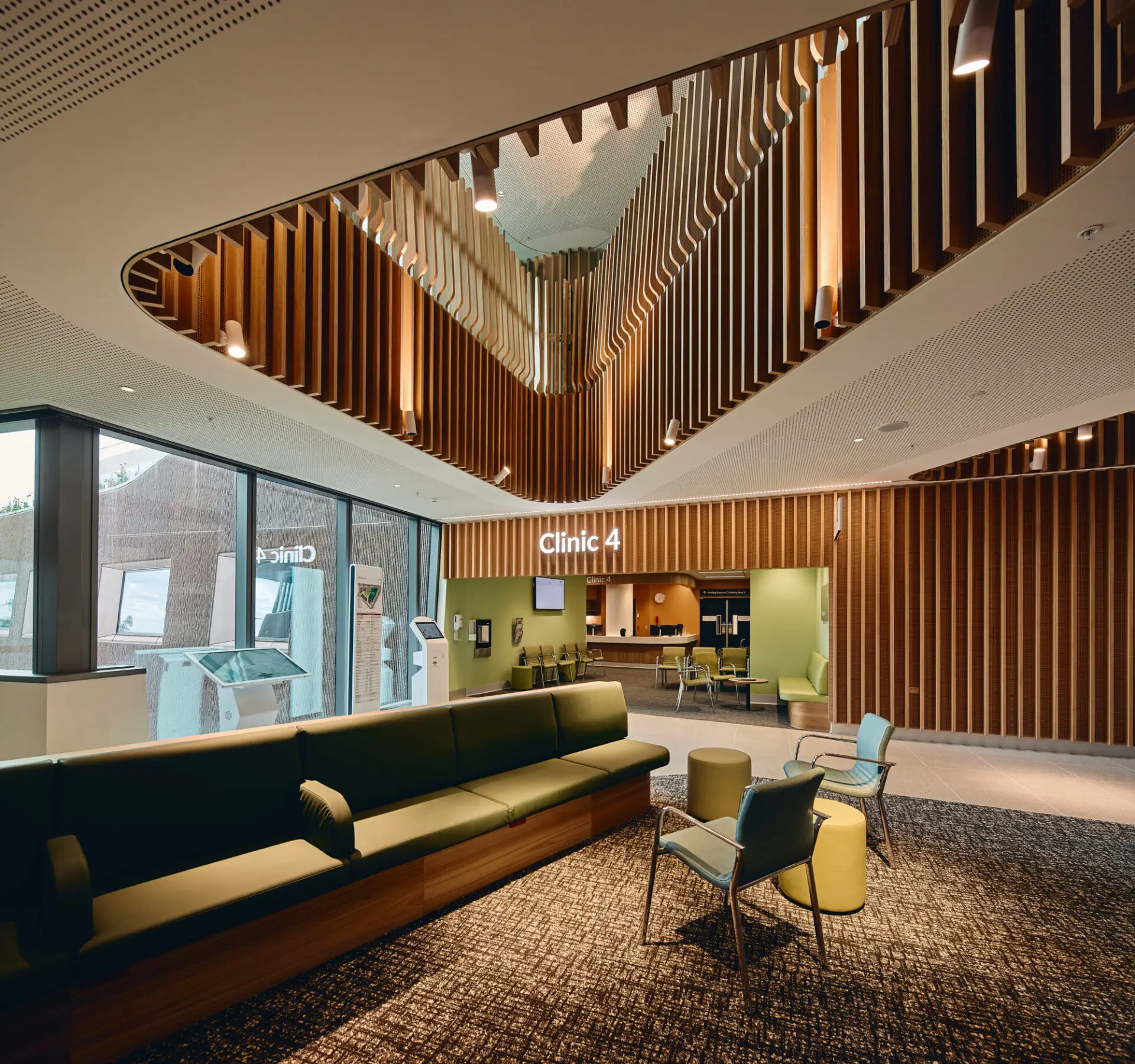 Patient experience is prioritised with abundant natural light, landscape views, and soothing green spaces for relaxation, creating a calming and intuitive environment.