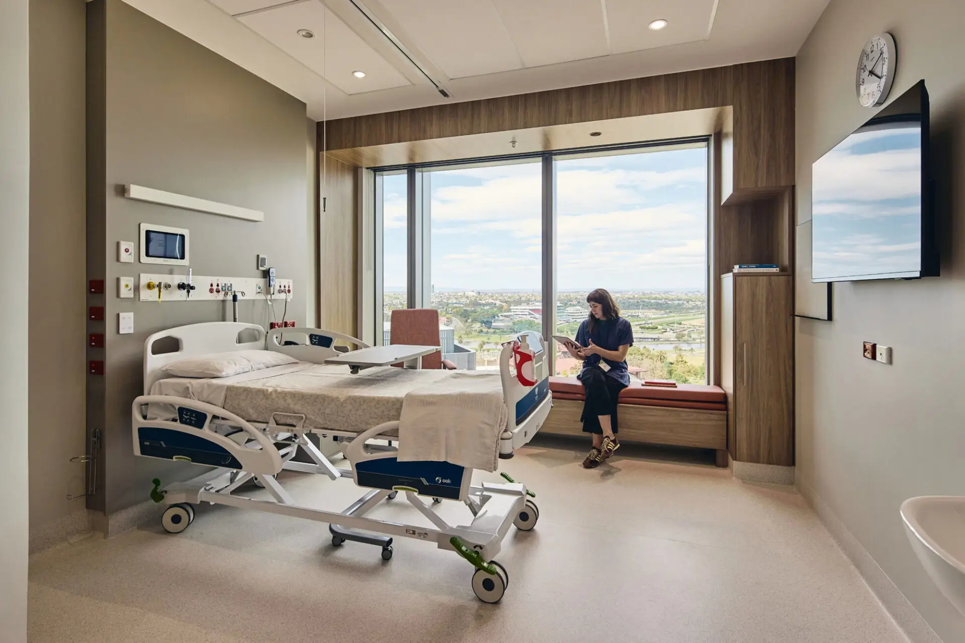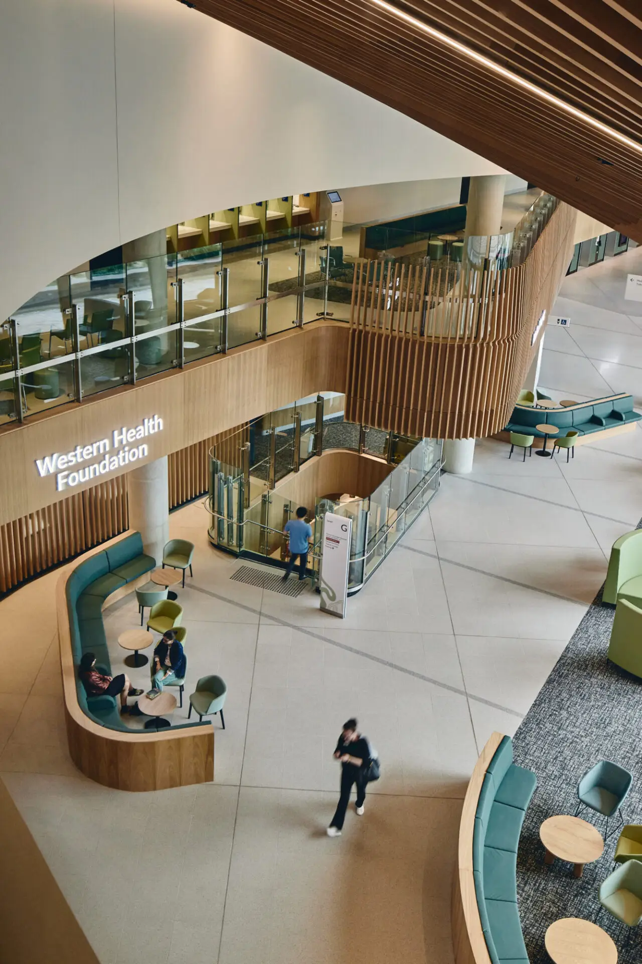 The design of the new Footscray Hospital directly benefits how the community in the western suburbs live, work, and receive care. The hospital’s design creates an environment that supports healing while enabling clinicians to work at their best. Clear wayfinding, access to natural light and connections to landscape reduce stress for patients and visitors, while flexible clinical spaces allow the hospital to adapt to changing models of care over time. Integrated education and research facilities support learning and innovation, ensuring the hospital not only meets today’s needs, but strengthens health outcomes for Melbourne’s west into the future.