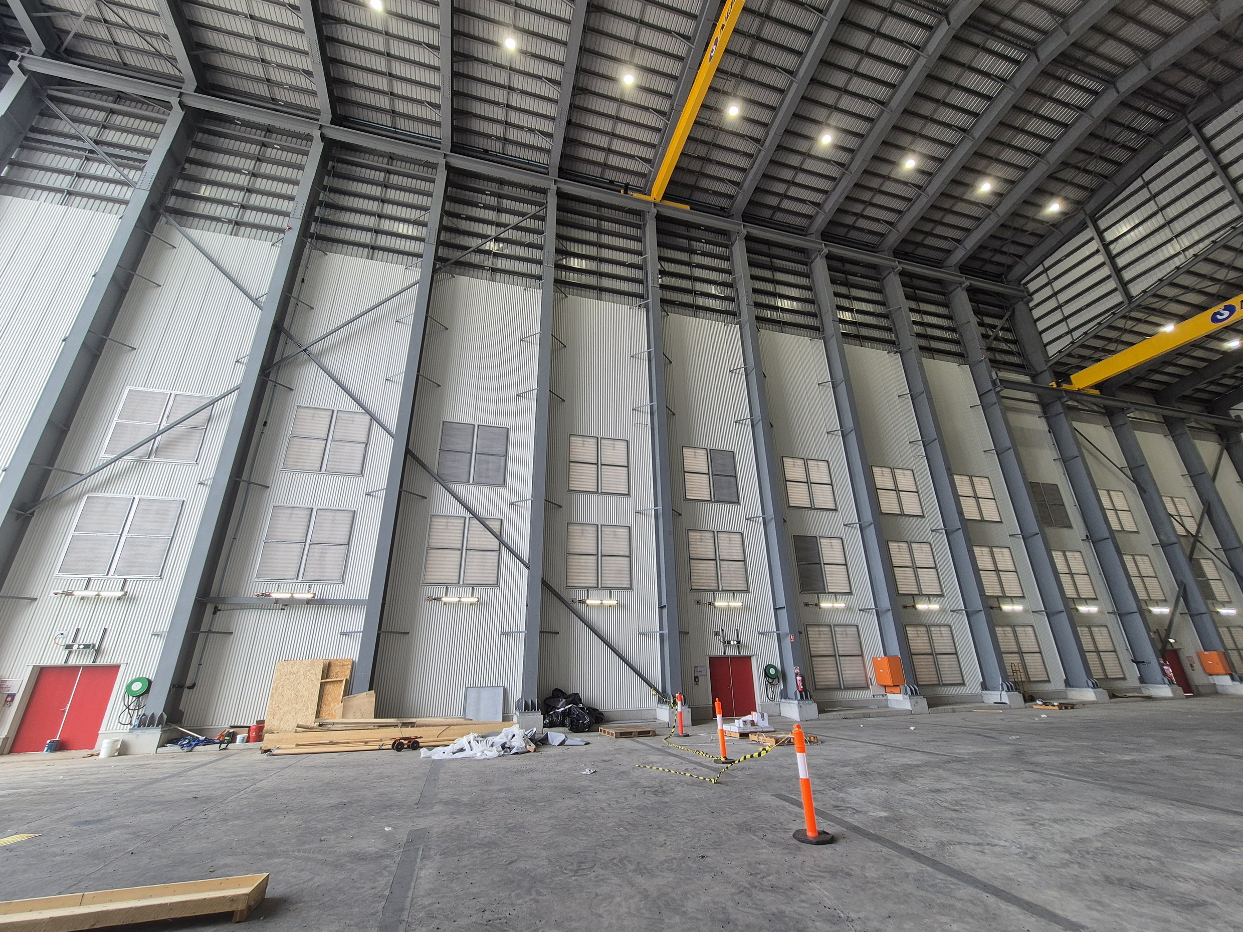 The Norship Maritime Maintenance Facility in Cairns is a groundbreaking addition to Australia’s marine infrastructure, setting a new benchmark for industrial architecture. This $16 million, all-weather, humidity-controlled workshop spans 62 meters in length and rises 26 meters high, designed to service vessels up to 400 tonnes. Featuring a robust steel portal frame, two overhead gantry cranes, and a custom 8.5-tonne fabric shipyard door, the facility enables precision maintenance, including specialized abrasive blasting and spray painting.