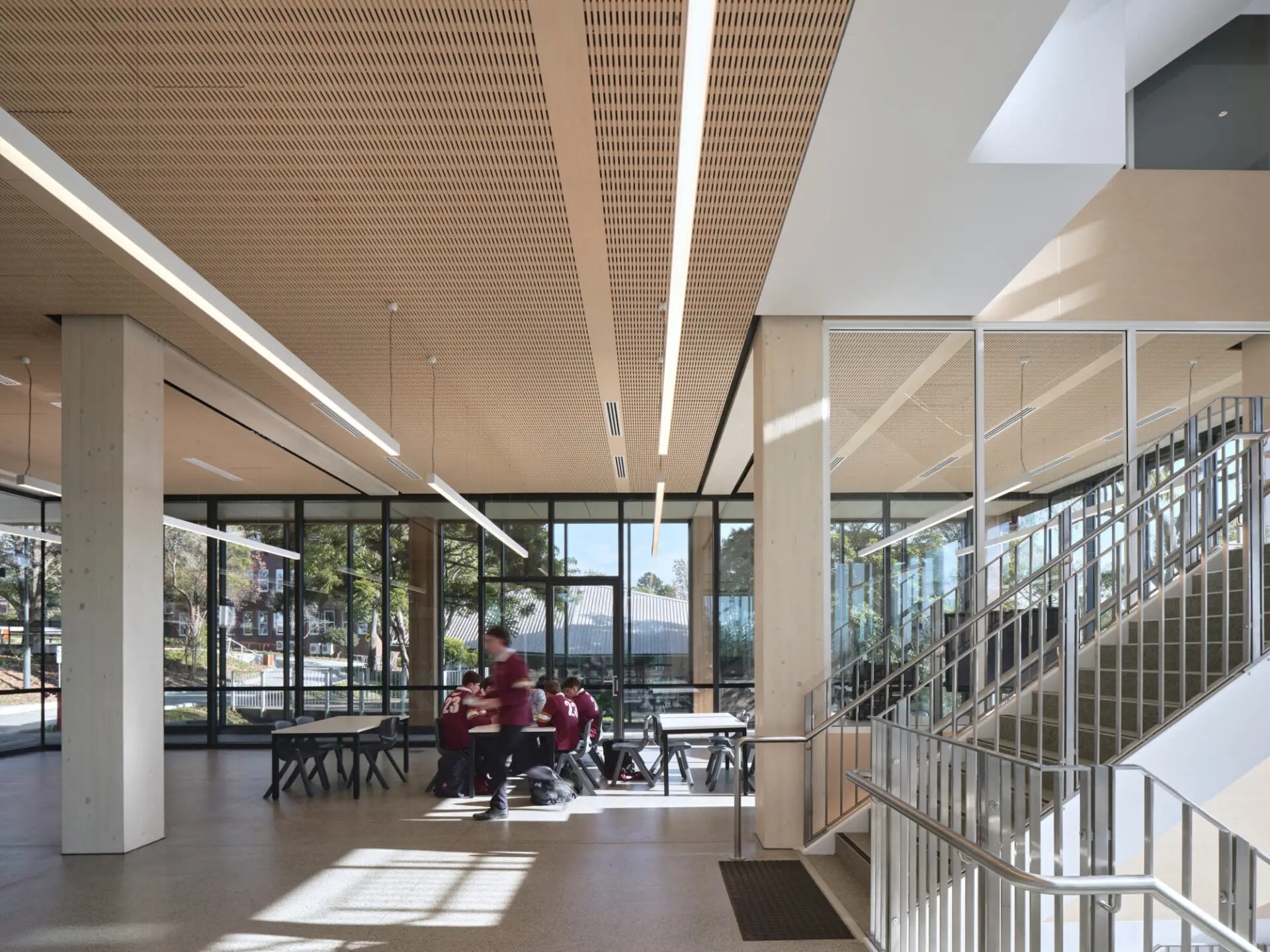 The redevelopment of the Commons, Innovation Hub and Canteen has transformed the Oakhill campus into a more connected, modern, and vibrant environment that celebrates the College’s heritage and future. The design strengthens the heart of the school, creating cohesive contemporary buildings that maintain Oakhill’s 90-year history as Lasallians.