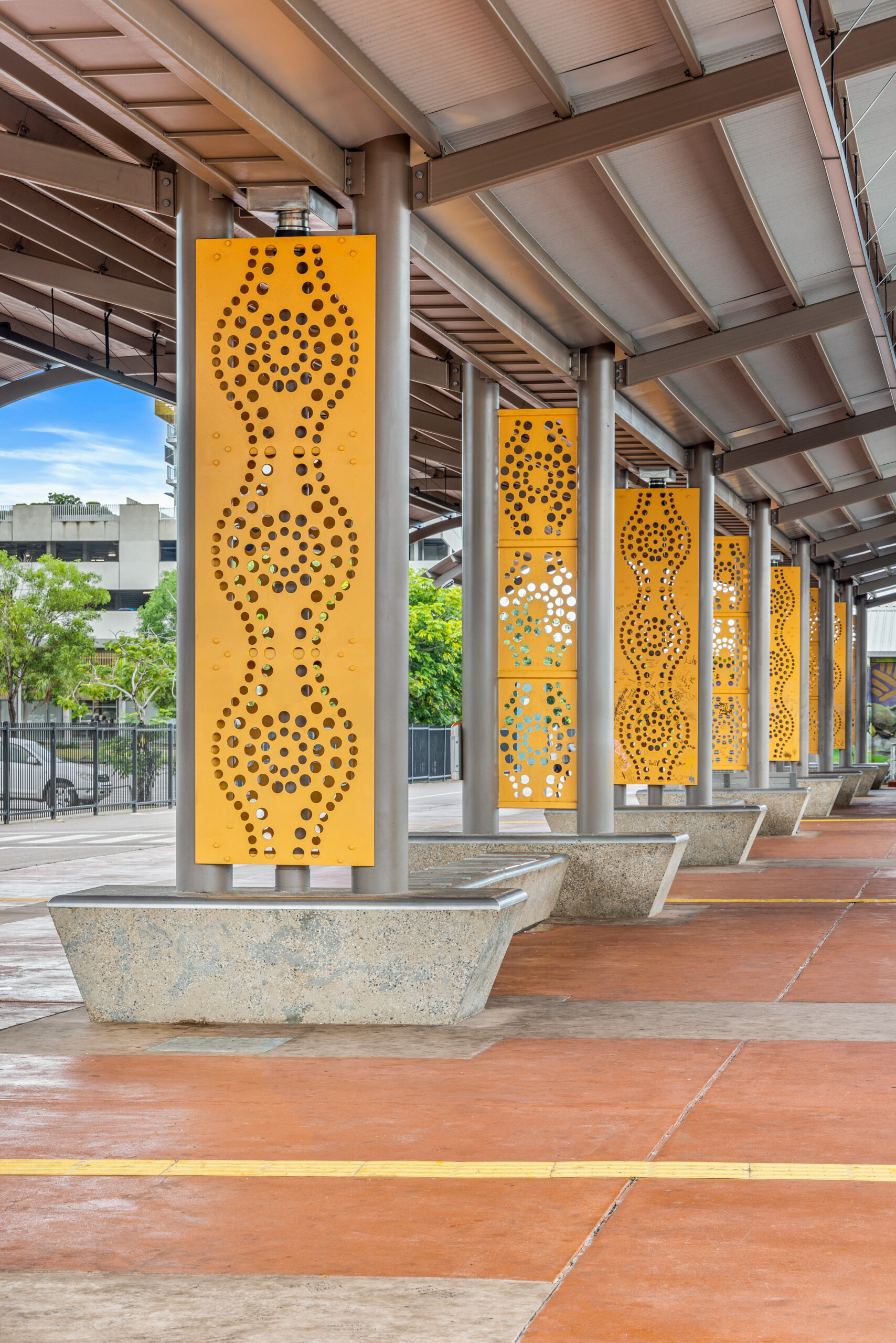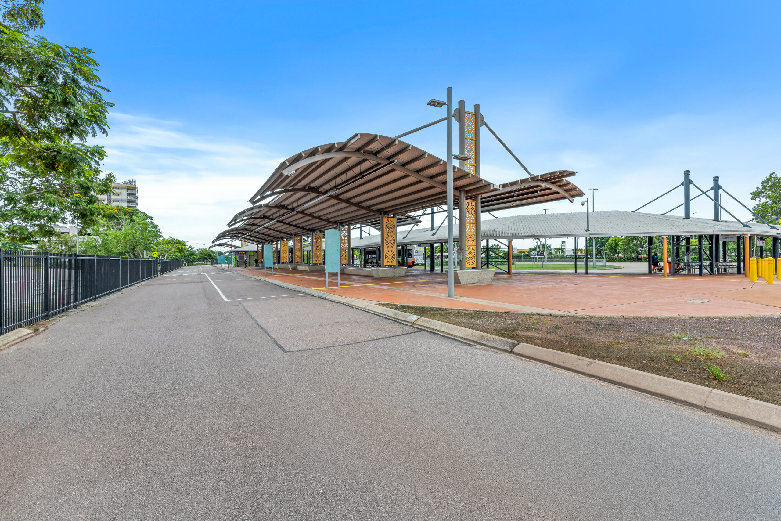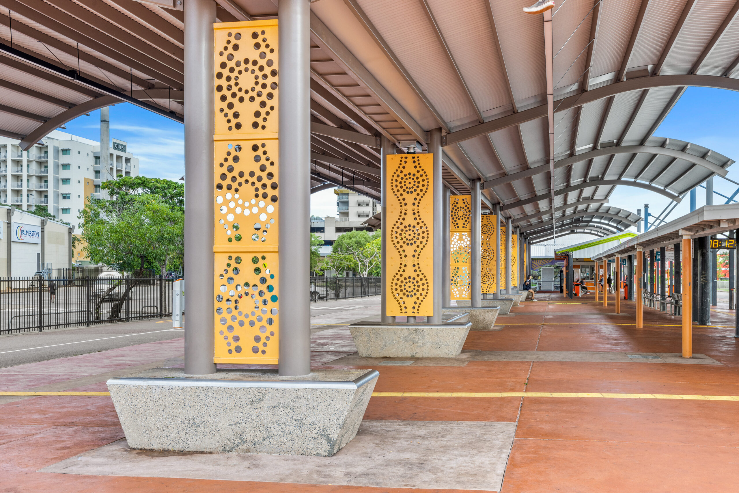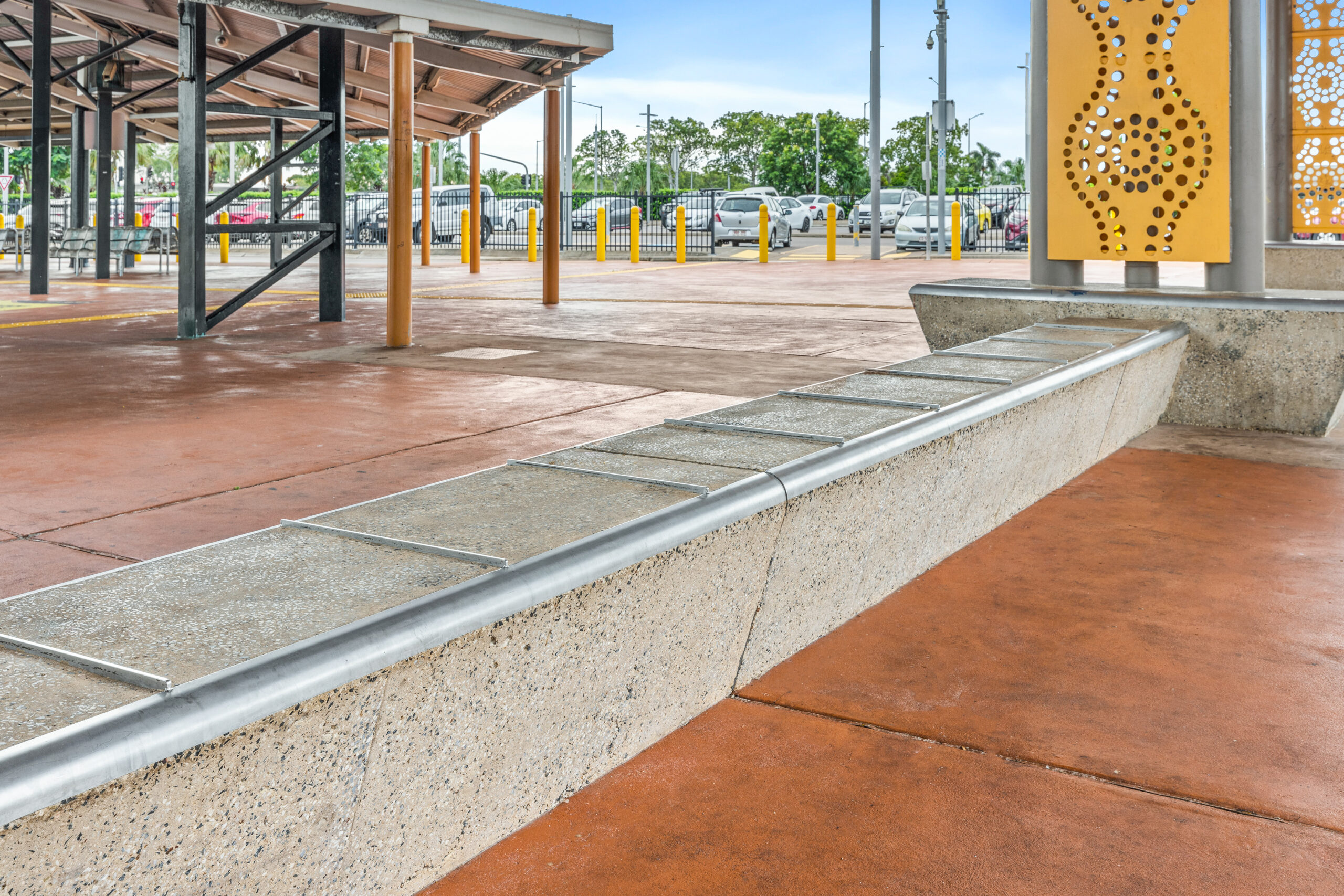 The new roof extension to the existing Palmerston Bus Interchange was developed in response to the increased number of commuters, and the need for additional weather protection. The new roof structure creates a safe, cool and dry environment, incorporating lighting and security. Additional seating was provided beneath the new roof structure.