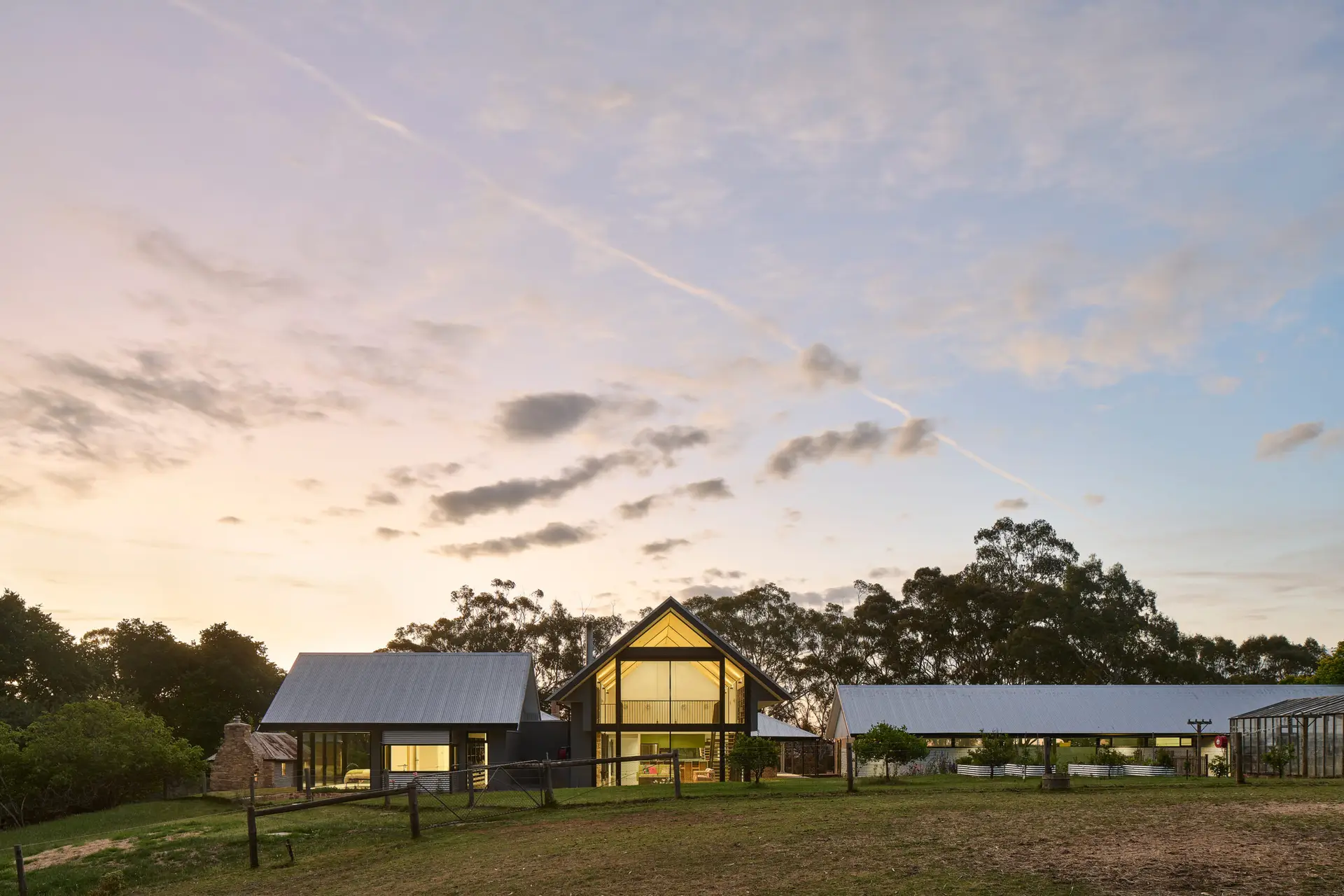 Our aim was to separate the existing eras of buildings and add a distinctive modern rural building reflecting our era.