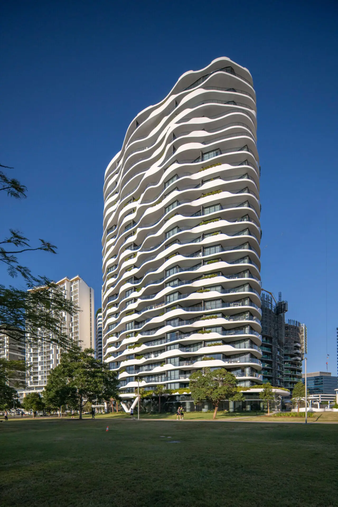 Quay Waterfront Newstead redefines Brisbane’s riverfront with its bold sculptural form and biophilic design, setting a new benchmark for architectural innovation and placemaking. Conceived as a “park within a park,” the 26-storey residential tower integrates over 2,000 plants into its façade, extending the neighbouring parkland vertically and connecting residents to nature. The building’s north-east orientation maximises natural light and river breezes, featuring organic curves and natural materials that echo the exterior’s lush landscaping. Residents enjoy resort-style amenities, including one of Brisbane’s largest rooftop sanctuaries with a 25-metre infinity pool, hotel-inspired lobby, and ‘private gardens’ for many apartments. Ground-level retail, water features, and lush landscaping anchor Quay within the Newstead Waterfront Precinct. As the first stage of a visionary three-stage development, Quay delivers an iconic visual identity and exemplifies Brisbane City Council’s vision for a well-designed, subtropical city.