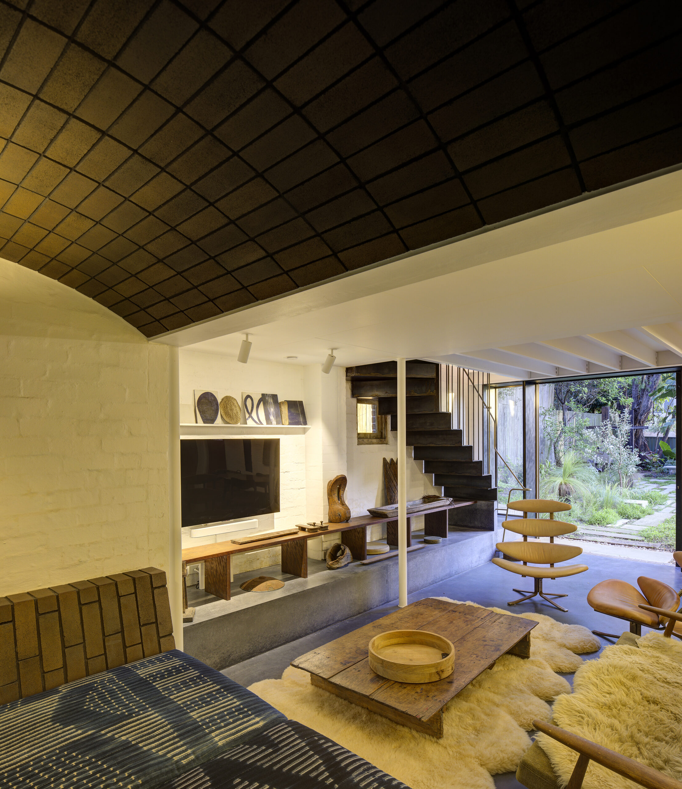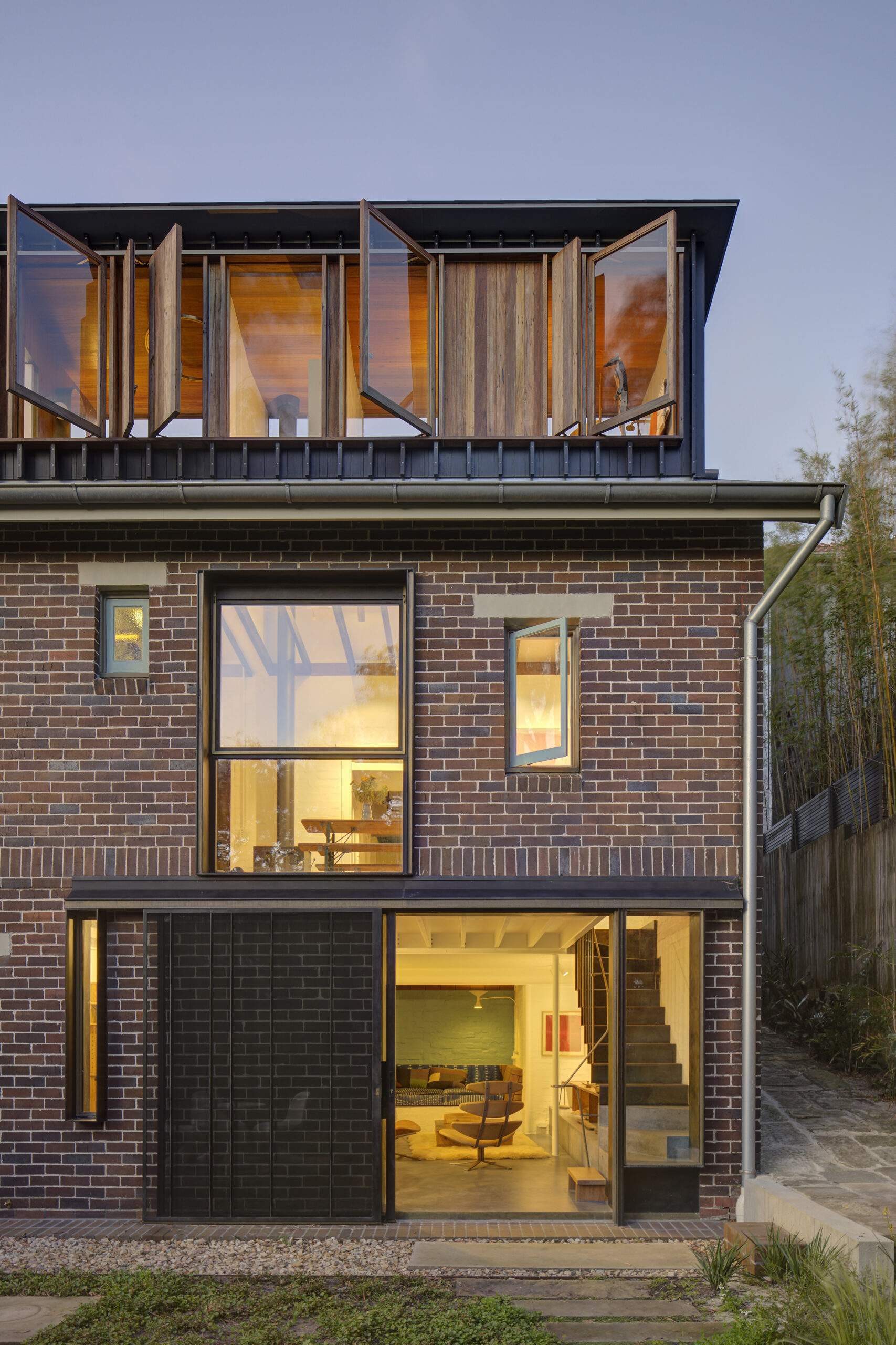 A reorientated front entry and rejuvenated existed stair, together link an excavated sub ground level creating a cavernous-like rumpus space up to a sunny roof-space addition provided both calm and retreat. Landscape and building are interwoven. Rainbow House includes a collection of delightfully whimsical detailing that portray a unique and thorough understanding of how everyday household fixtures and details can be elevated to art.