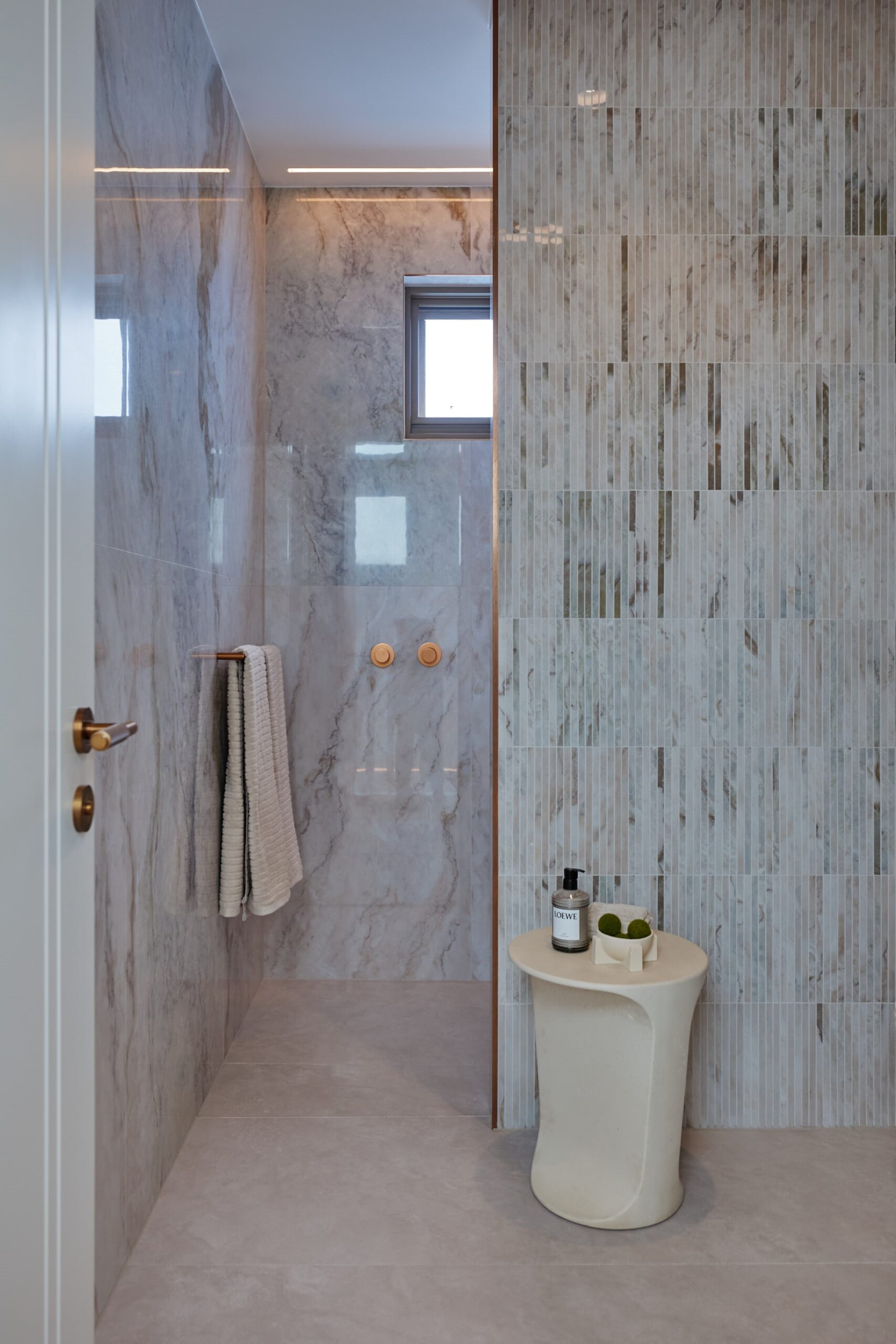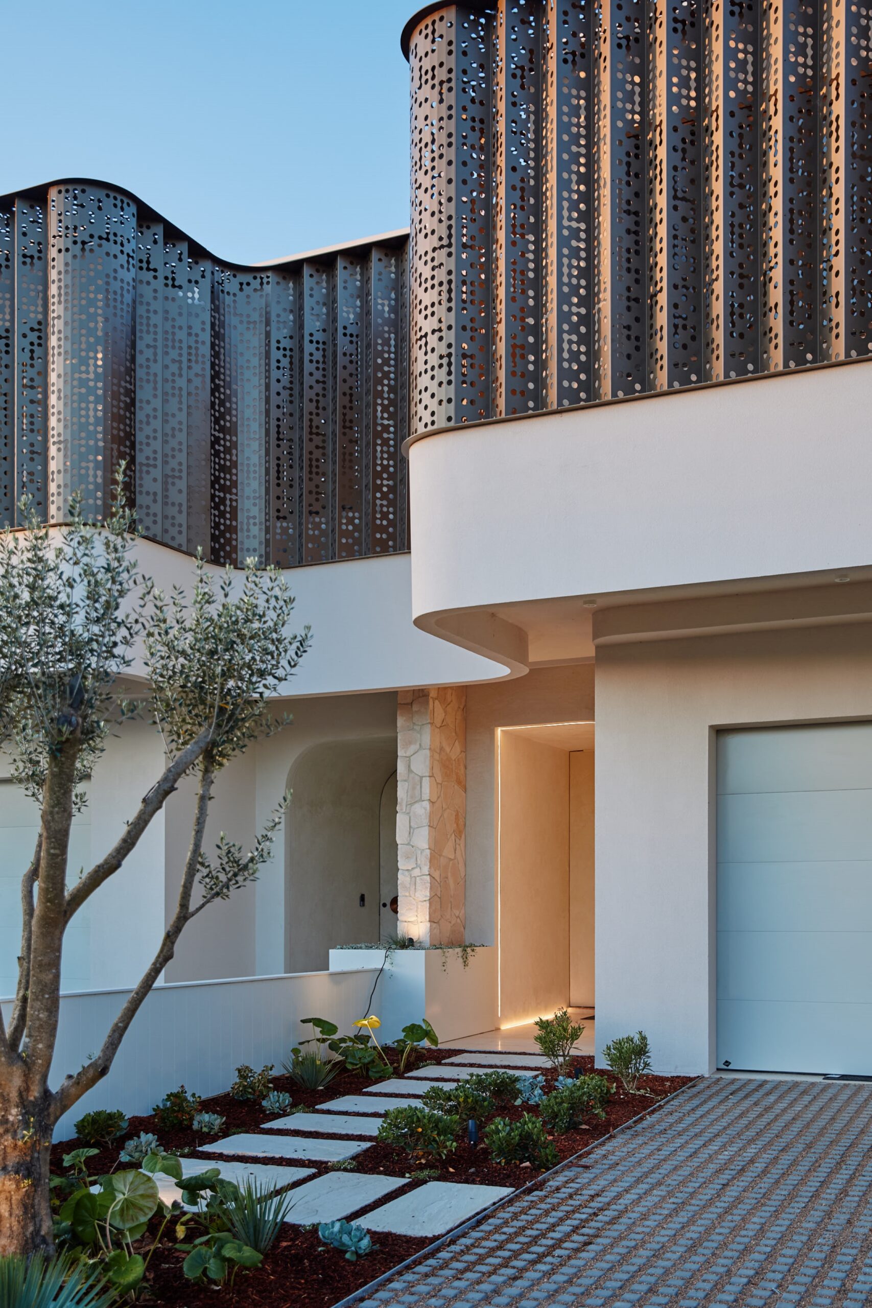 Ripple House whispers the poetry of water, embodying fluidity and connection, inspired by the graceful, ever-changing dance of droplets. This lyrical concept ripples through every detail, most vividly in the custom-designed front screen, a masterpiece by the architect. Its pattern, an elegant ballet of converging and diverging droplets, stands as a sculptural ode to nature, casting ephemeral shadows that shift with the sun’s journey, painting the home in light’s delicate choreography. This design challenges convention by introducing a central void with strategically placed skylights, flooding the interiors with daylight and overcoming the inherent limitations of duplex design. The void not only ensures a bright, airy atmosphere throughout the home but also fosters interaction between the two levels, creating a dynamic and connected living environment.