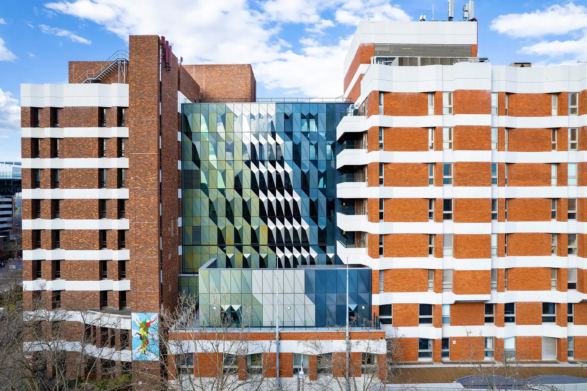 A key design goal was to create an interconnected, accessible hospital integrated with the urban environment. An 8-level “infill building” was constructed in the central void, linking the Peter Howson Wing and Smorgon Family Wing into a continuous floorplate. This reconfiguration supports a patient-centred model, improving efficiency by organizing clinical workflows by floor.