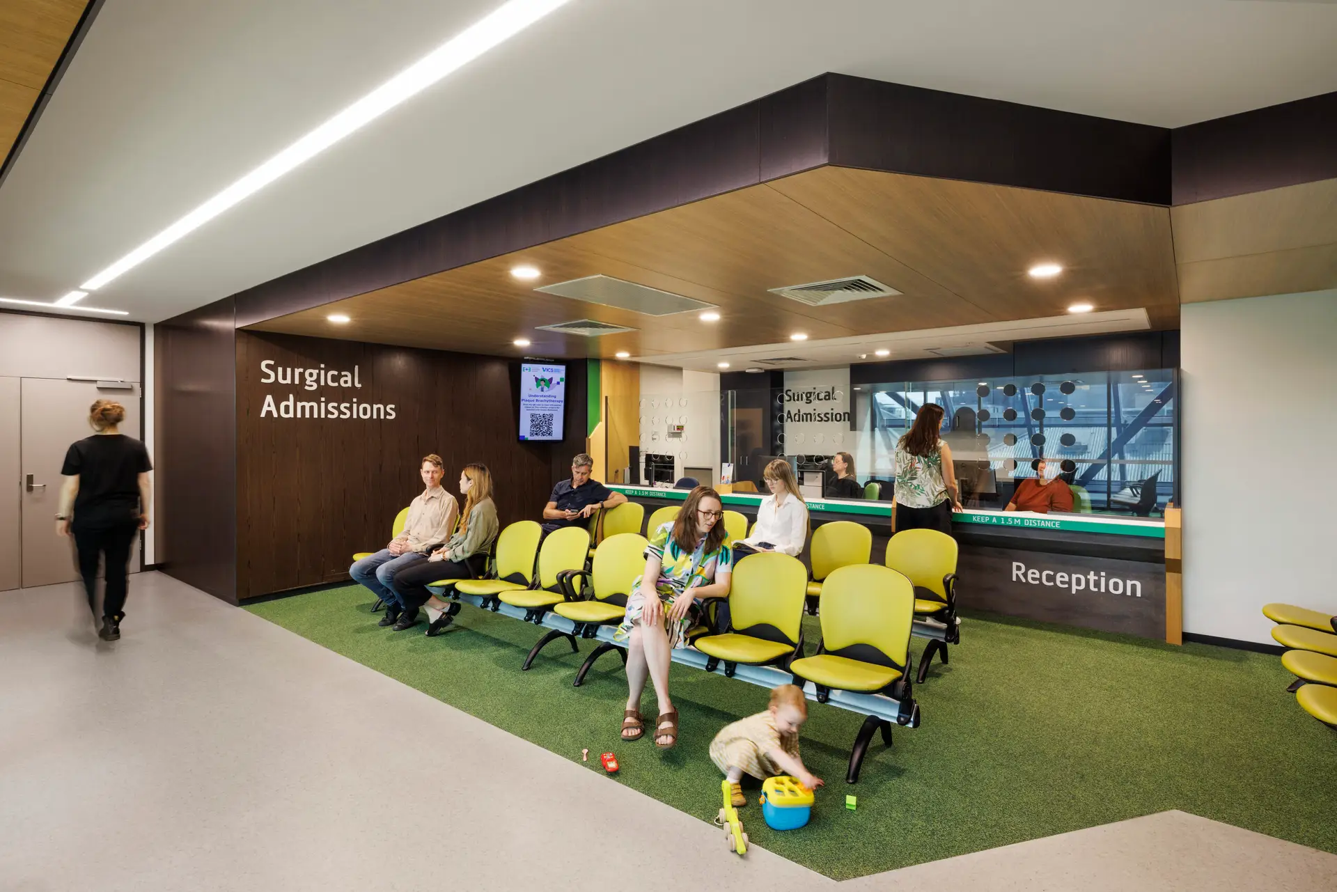 A new internal public street on the ground floor connects the hospital’s entry points, opening the space to the surrounding medical precinct and transforming the campus from a closed, inward-focused design into an open, welcoming environment.