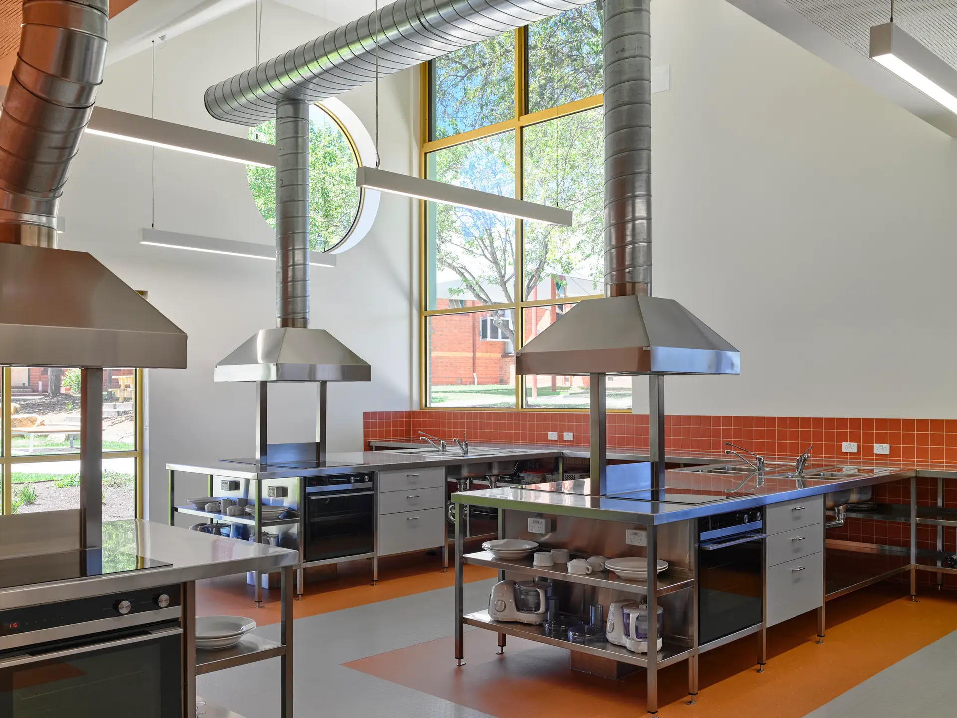 Designed to support Design Technology, Science, and Food Technology, the new centre is a dynamic learning environment offering flexible, high-performance spaces. Specialised facilities include a stainless-steel commercial kitchen, science laboratories, and a workshop for woodworking, jewellery-making, and metalworking. A shared theory room adjacent to these spaces provides versatility fostering cross discipline opportunities. Beyond its role as an educational facility, the centre serves as a vocational hub for the local community, connecting students with real-world job opportunities and enhancing the town’s social fabric.