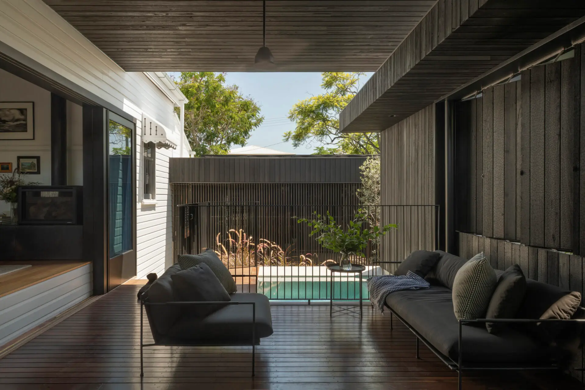 Salisbury Seam House redefines the Queensland worker’s cottage, weaving character, and contemporary life with subtle confidence. The humble original home is celebrated, carefully adjusted, and grafted onto, revealing its latent potential. At the heart of the project, a dramatic wrap-around loggia, and a procession of highly crafted, operable timber doors dissolve boundaries between inside and out, creating a playful, flexible, and expansive home despite its modest footprint. The project challenges conventional room layouts, expanding constrained spaces so the small site never feels small, and provides a home the owners can grow into. Shou-sugi-ban cladding and refined detailing elevate everyday life, demonstrating the inherent potential of the traditional Queensland house to be re-imagined and remade with contemporary craft.