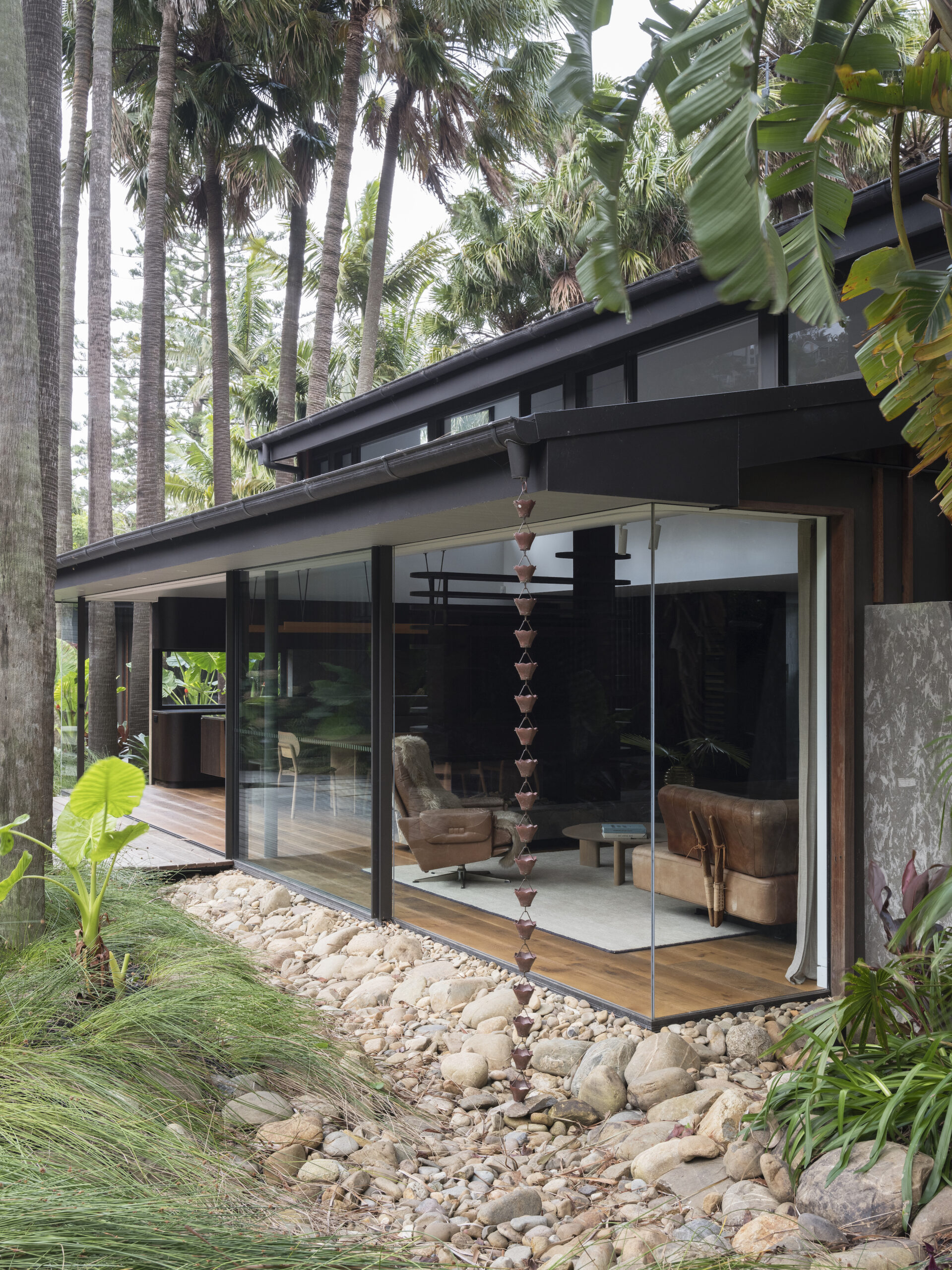Perhaps the simplest and unforeseen delight is, despite being a beach house, our favourite time is bunkering down and being immersed in the incredible feel and sounds of the house when the rain arrives and our delightful rain chains flow.