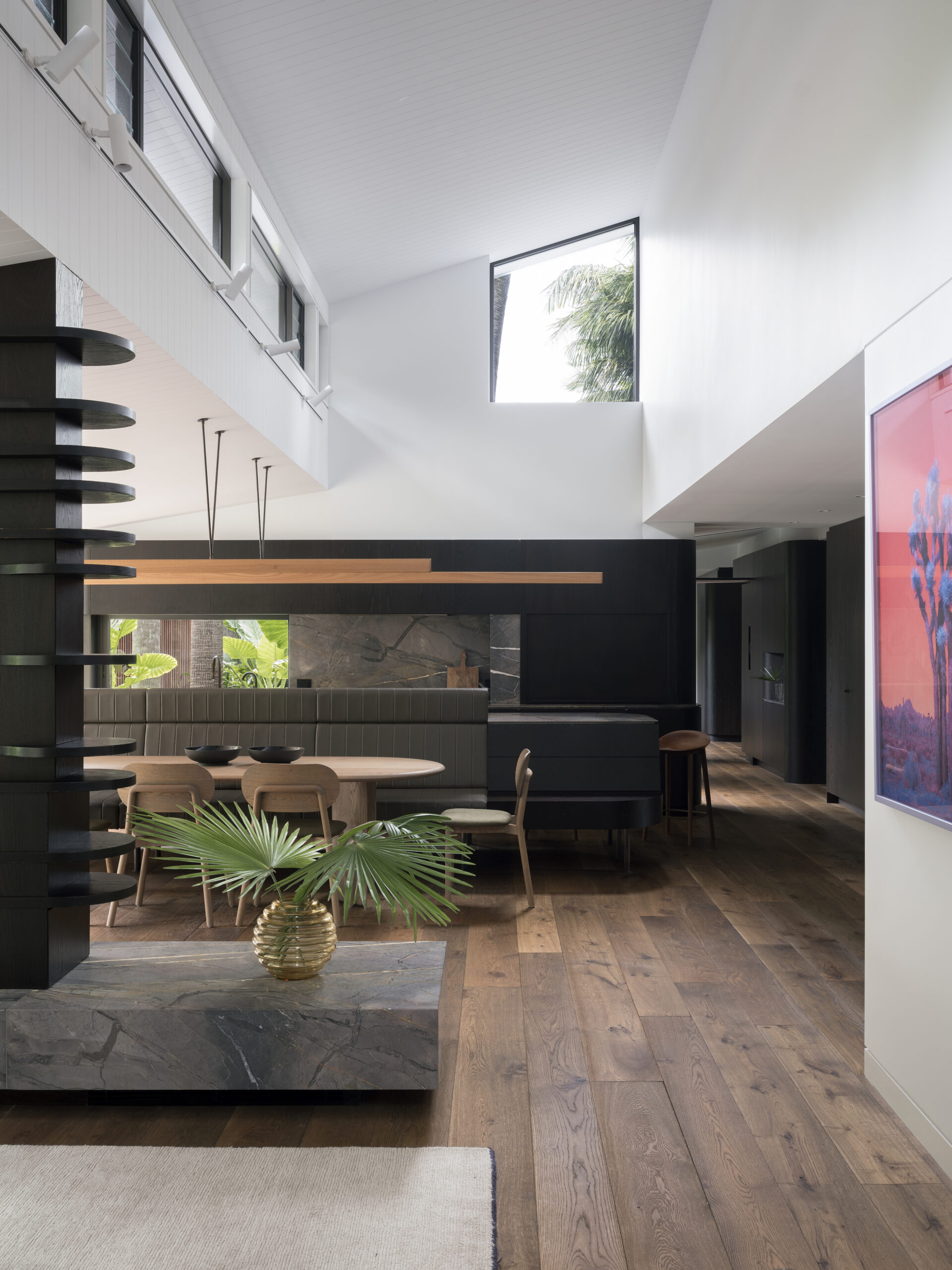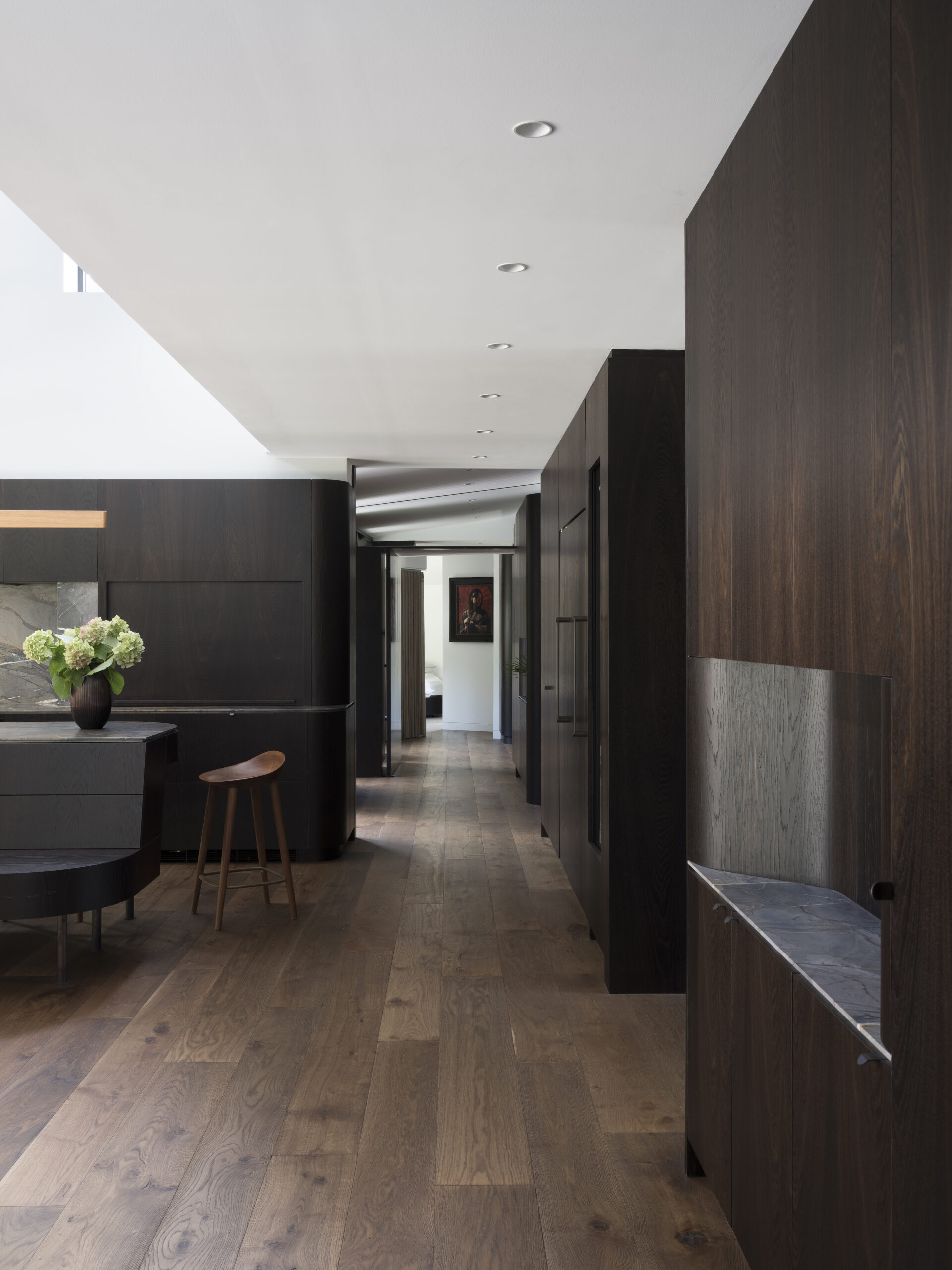 It’s beautifully curated but we’re never protective, it has real function.There are so many little delights, from floor to ceiling windows that reveal entirely new aspects, to our hidden powder room, to the beautiful surprise reveal of wallpapered bedrooms.