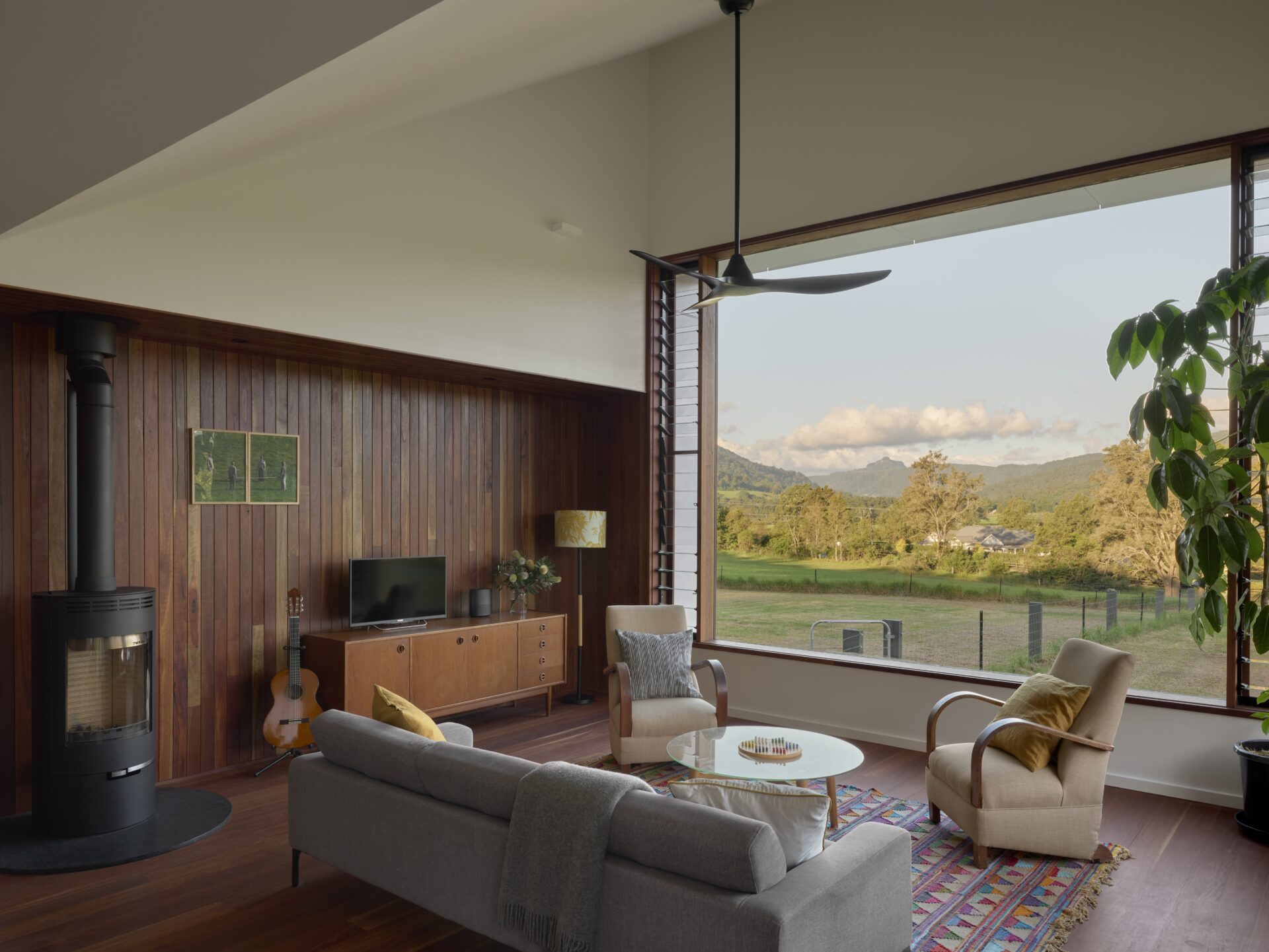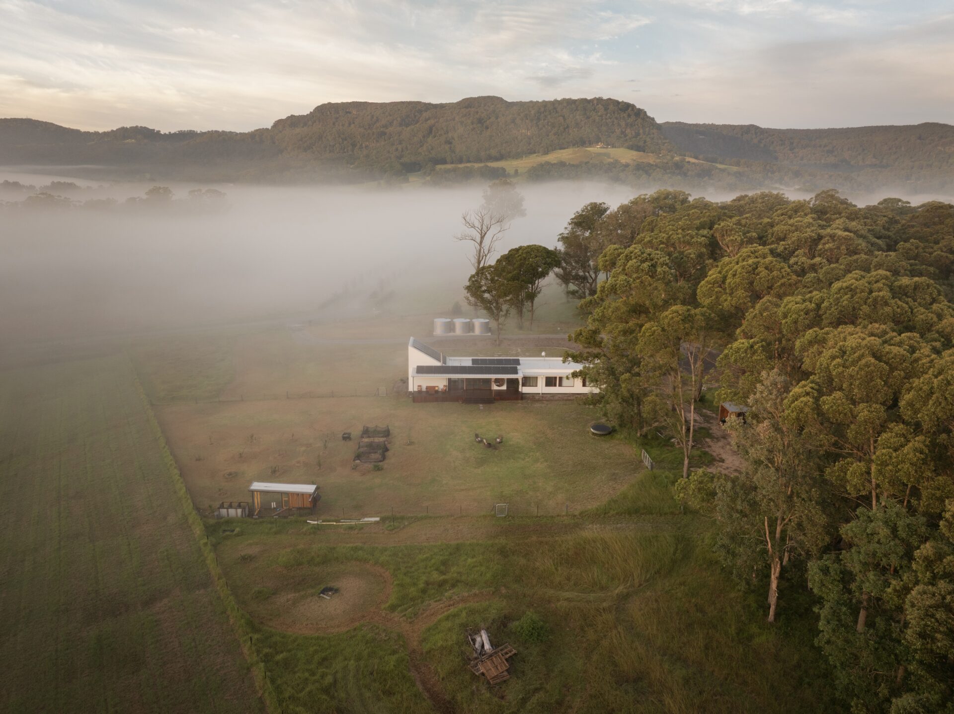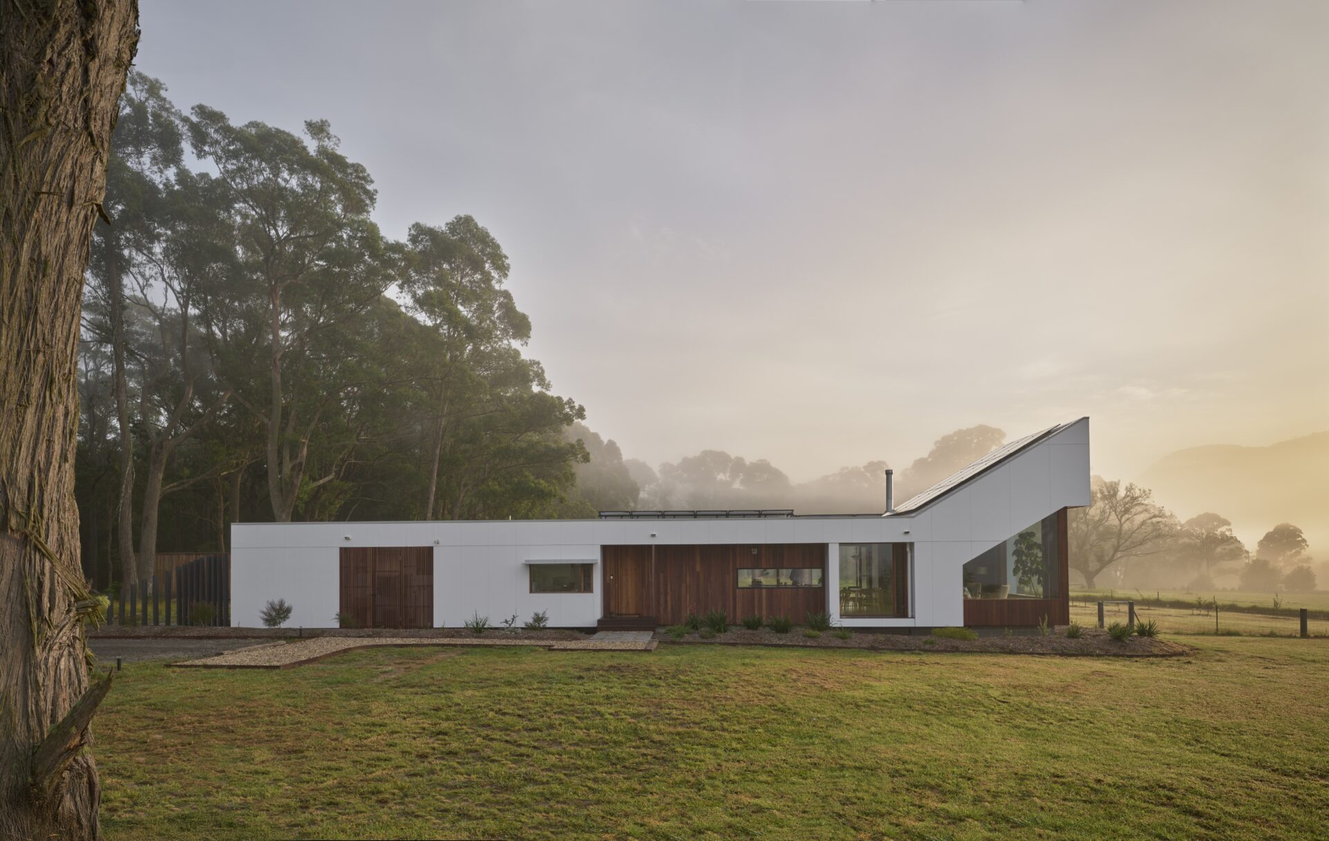 “We wanted a home that felt connected to the land rather than dominating it. Inspired by the simple honesty of farm structures, the design reflects the practical beauty of the valley’s rural history. Building modestly allowed us to focus on quality, sustainability, and creating a space that truly feels like us—a light-filled pavilion between paddock and bush. Solar power, recycled materials, and additional insulation make the house efficient and future-proof, while its form speaks to tradition in a contemporary way. It’s more than a house; it’s a place deeply tied to community, landscape, and how we want to live.”