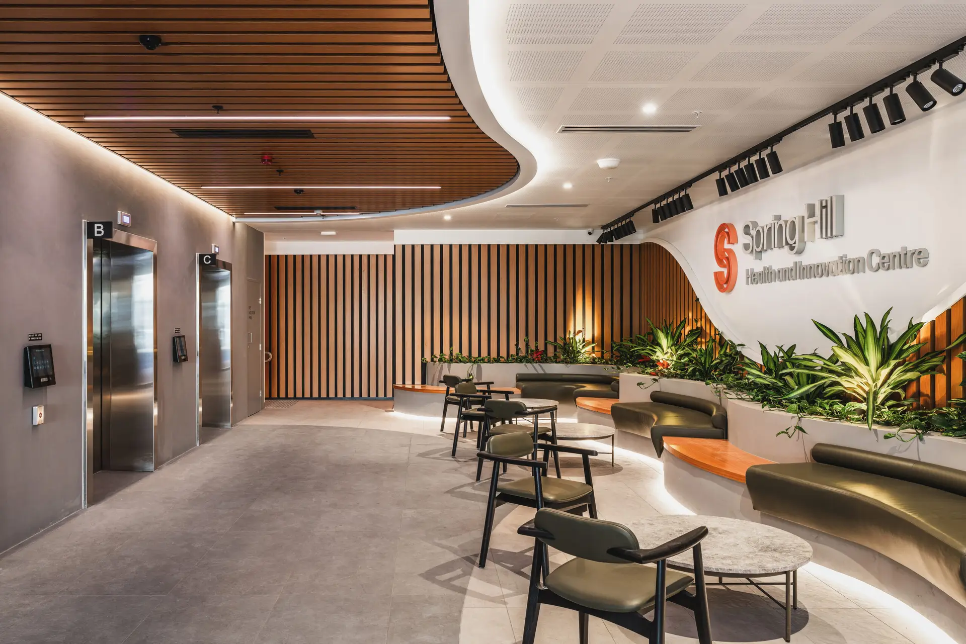 Navigating complex site constraints, the design maximizes efficiency through thoughtful spatial planning. The breezeblocks provide a textured form and enable open-air parking, reducing mechanical demands while adding visual interest. A focus on sustainability led to a 5-star Green Star rating, with durable, low-maintenance finishes ensuring long-term efficiency. Despite site limitations, the design successfully balances functionality, aesthetics, and sustainability, delivering a high-quality healthcare facility that enhances both the built environment and community well-being.