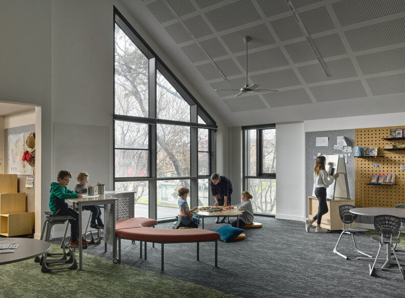 ‘Nozomi’ means ‘hope’ in Japanese, embodying the aspirations and potential of every child at St Kilda Primary School, and incorporating the school’s nomenclature of buildings to honour their long-held connection with Japan. Rigorous collaboration between Law Architects and various key stakeholders in the project resulted in a new ‘Nozomi’ learning building deeply embedded with the school’s values and encompassing core design principles of sustainability, connection to landscape and inclusivity. Learners slide effortlessly between indoor and outdoor spaces with playful delight, engagement, and a deep connection with the surrounding natural environment. The new learning building remains adaptable to evolving pedagogical approaches and varying student populations, whilst offering a respectful nod to its heritage-listed sibling, the ‘Hato’ building sitting adjacent on Brighton Road. The completion of Nozomi is a tribute to years of dreaming and visioning by the school community and the many hands and voices involved in its realisation.