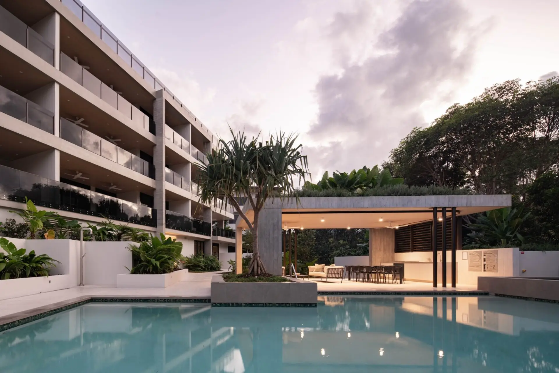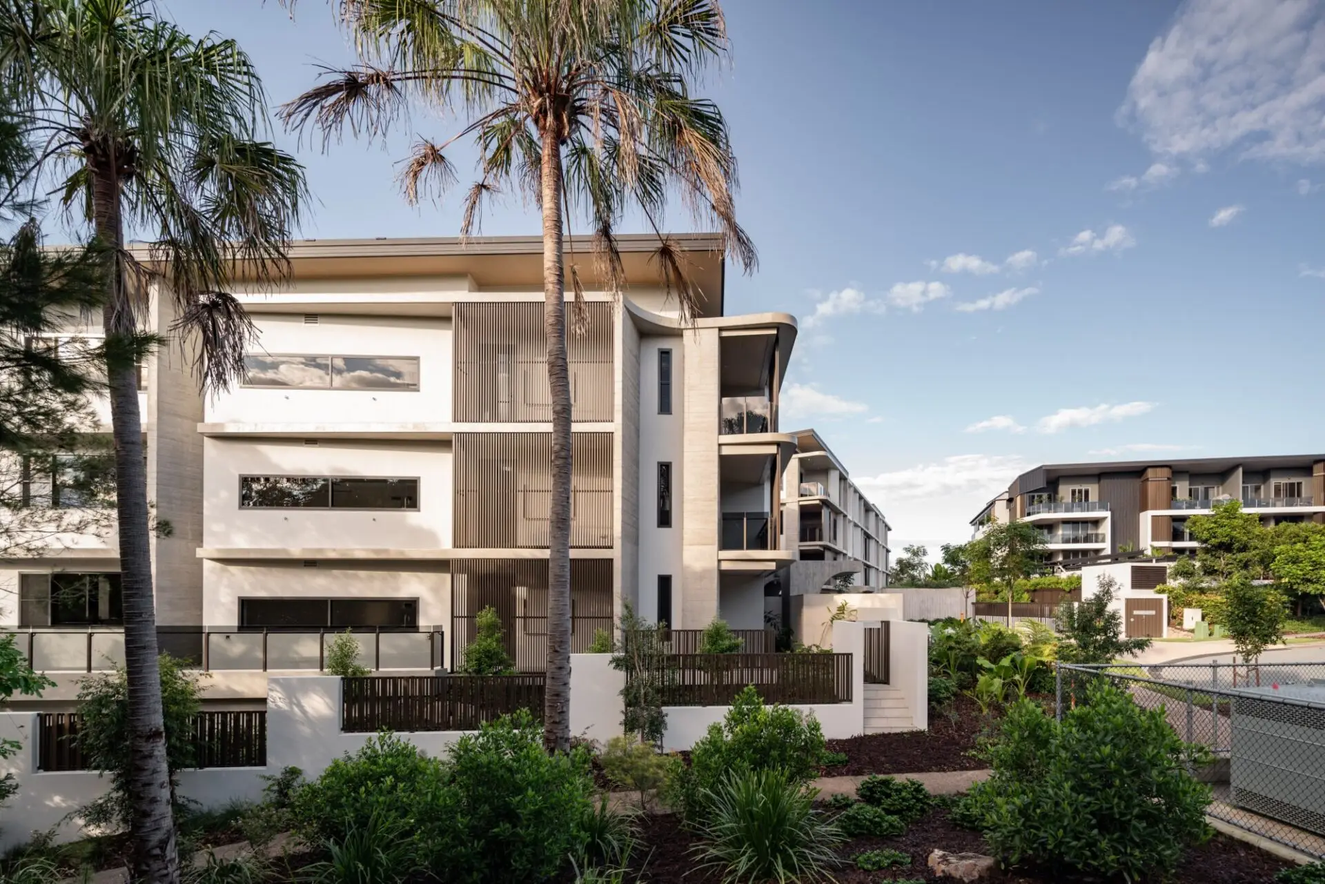 Tallow Residences marks the final stage of the Settler’s Cove masterplanned precinct, completing the development with a refined coastal apartment building of distinctive architectural character. Located alongside Noosa’s estuarine wetlands, the design responds directly to its setting through sculpted massing, faceted façades and deep window reveals that enhance passive shading, natural ventilation and visual connection to the landscape.
