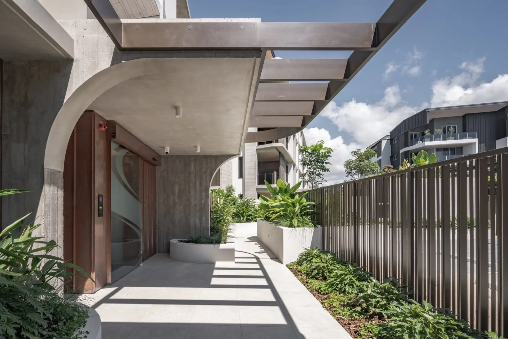 At ground level, tactile finishes and landscaped edges reinforce human scale and encourage informal social interaction. Tallow Residences delivers a confident, site-responsive and enduring architectural outcome grounded in environmental performance and material longevity.