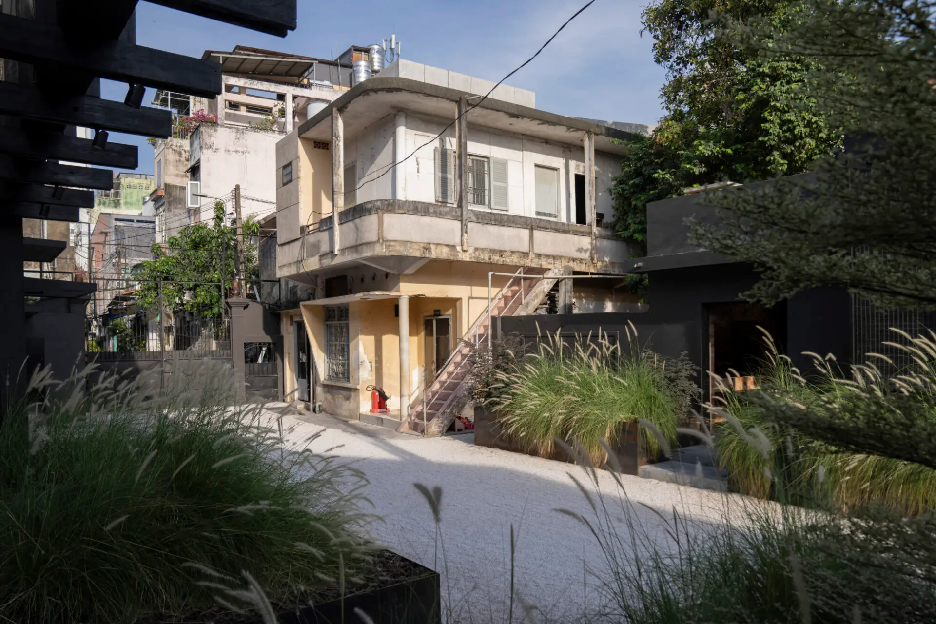Visitors enter through a narrow alley, experiencing a spatial and atmospheric transition into a sunlit compound – a contemporary model of continuity and regenerative design.