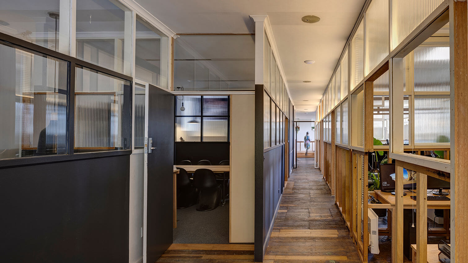 The project challenges the paradox of ‘sustainable architecture’ by choosing to build virtually nothing new. Instead, they have undertaken to ‘pull back the layers’ of an unimproved 1960’s office interior located within an 1850’s heritage-listed building. In doing so, they have created a revitalised interior, bathed in natural light, full of texture, which celebrates the perfectly imperfect history of the building. Each adaptation or uncovering expresses a particular understanding of the building, while in concert testing the potential of what may constitute a contemporary workplace.