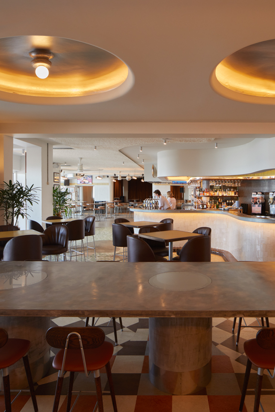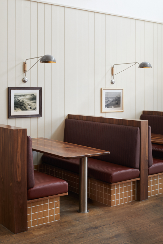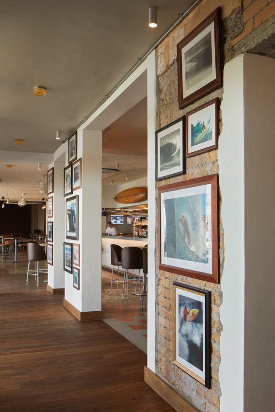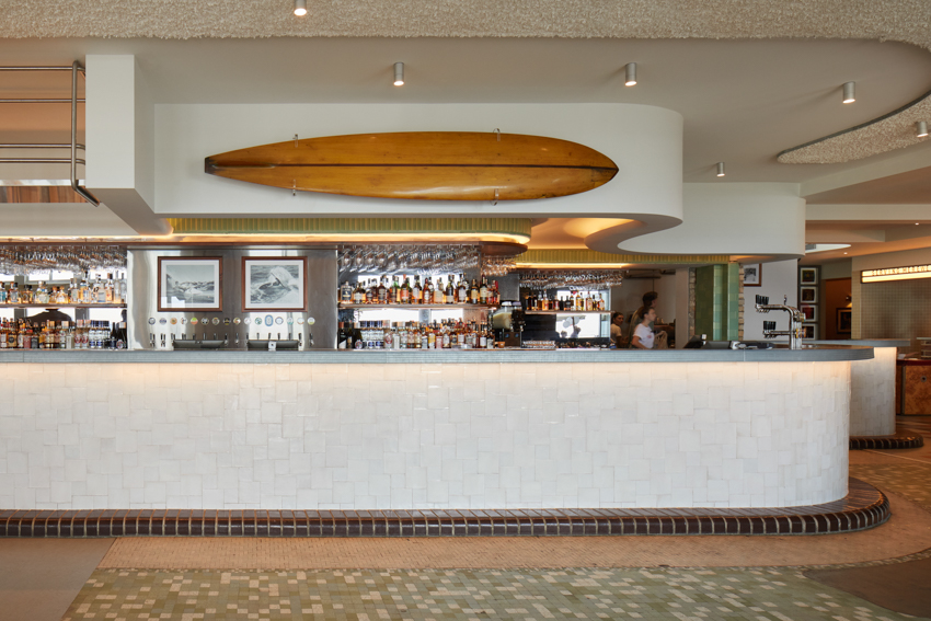 The refurbished interiors of the Beach Hotel breathe new life into the iconic 1940s building, blending influences from its long-demolished art-deco predecessor with the hedonistic spirit of 70s and 80s surf culture. The playful and fluid heritage interpretation embraces the hotel’s colourful history without being confined to a single period, integrating the building’s rich heritage fabric with the robust character of a surf club.