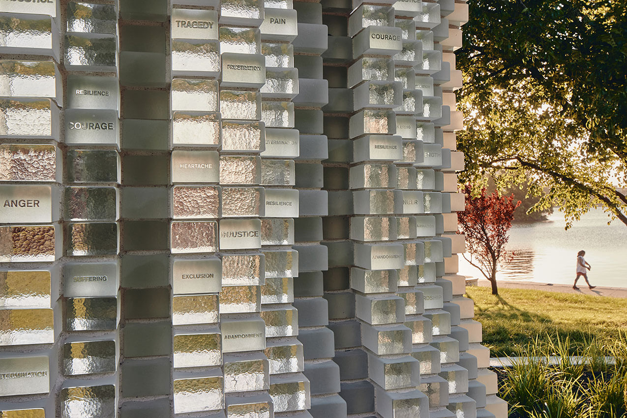 The glass brick structure designed by PLACE Laboratory aims to create a space for empathy, emotional reflection, and education.