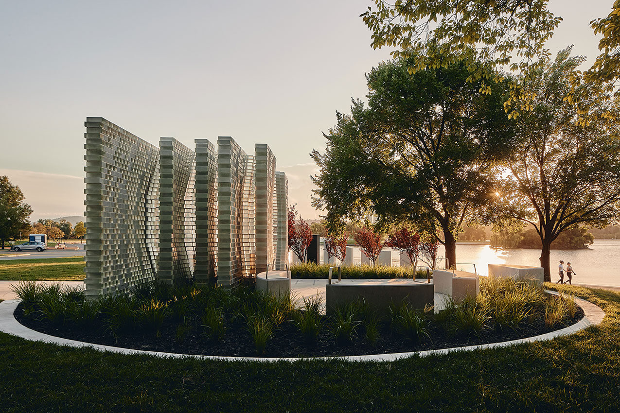 Symbolic gestures unfold a narrative as visitors move through the space, with features representing the fragility of life, the ripple effect of thalidomide, and survivors’ strength. Words etched into the walkway convey the impact, acknowledging trauma and loss. A historical timeline educates about the tragedy, while an archway through the structure frames a view of Lake Burley Griffith offering hope and a sense of fulfillment. The memorial provides a serene setting for reflection, emphasizing the ongoing impact of thalidomide on survivors and fostering awareness.