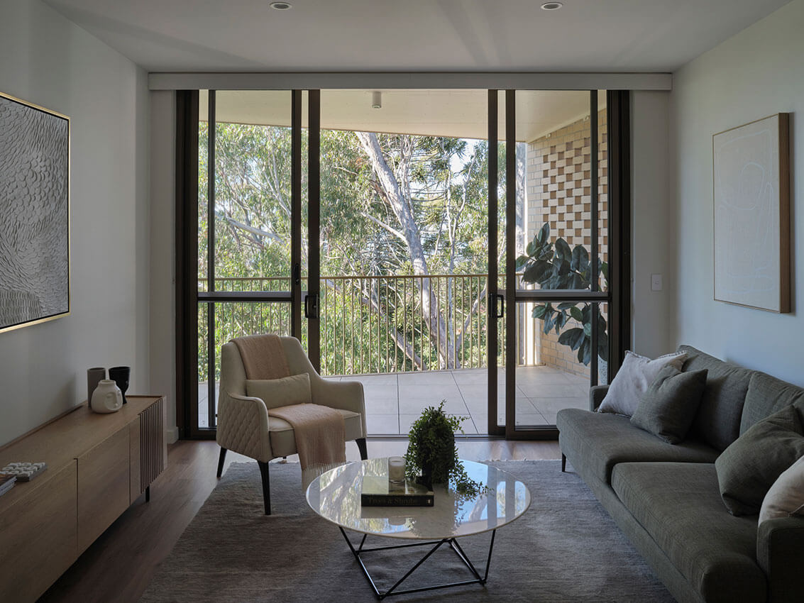 Each apartment presents a view of either the escarpment or the golf course. The generous depth of the balconies facing the public view of the course maintains our residents’ privacy.