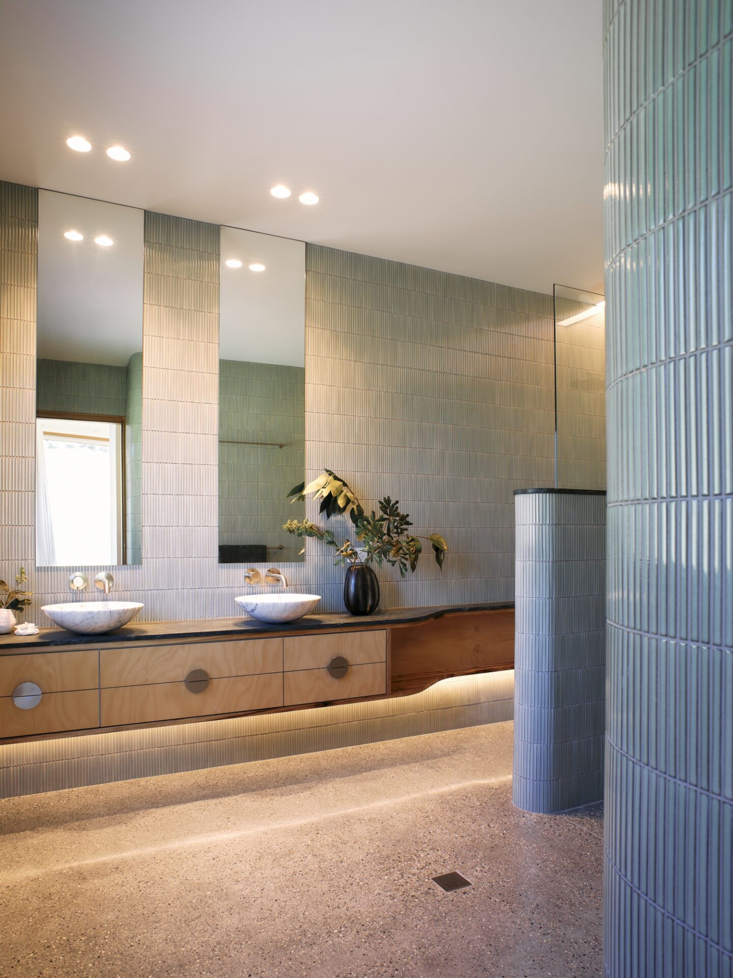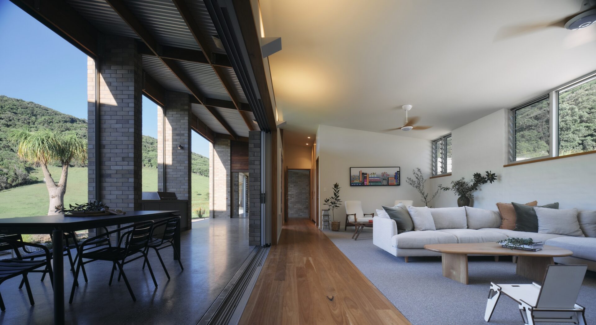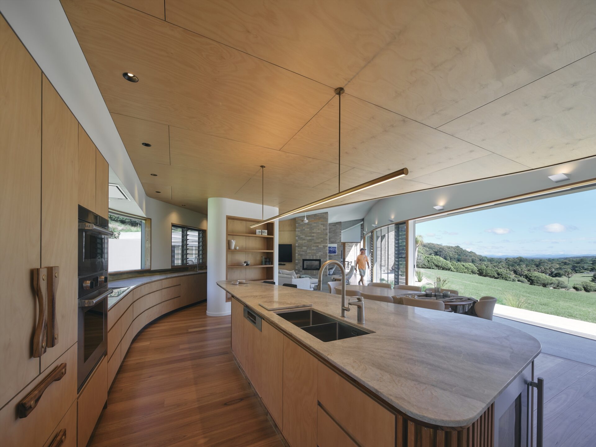 The Saddle House was designed to accommodate multiple generations of the family on a working horse stud, nestled between two coastal mountains on the NSW mid north coast. The joy of this house is not only in it’s functional planning but how the three dimensional form with it’s pallet of colours, textures and finishes interacts with the surrounding landscape. Throughout the design and construction of the project, an unwavering dedication to the beauty of the site spearheaded. The placement and openness of the home was pivotal in this, both in maximising views and minimising separation from the environment.