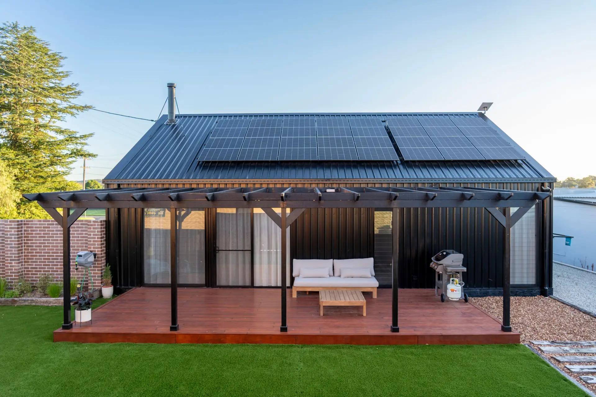 Set within Stanthorpe’s town centre, The Shed stands as a testament to both simplicity and traditional architecture. The building’s modest footprint belies its clever functionality, effortlessly accommodating up to six guests. Locally sourced materials ground the structure in its surroundings, while solar energy integration ensures a minimal environmental impact. Strategic glazing provides privacy while inviting natural light to dance across raw textures, connecting guests to the landscape beyond.