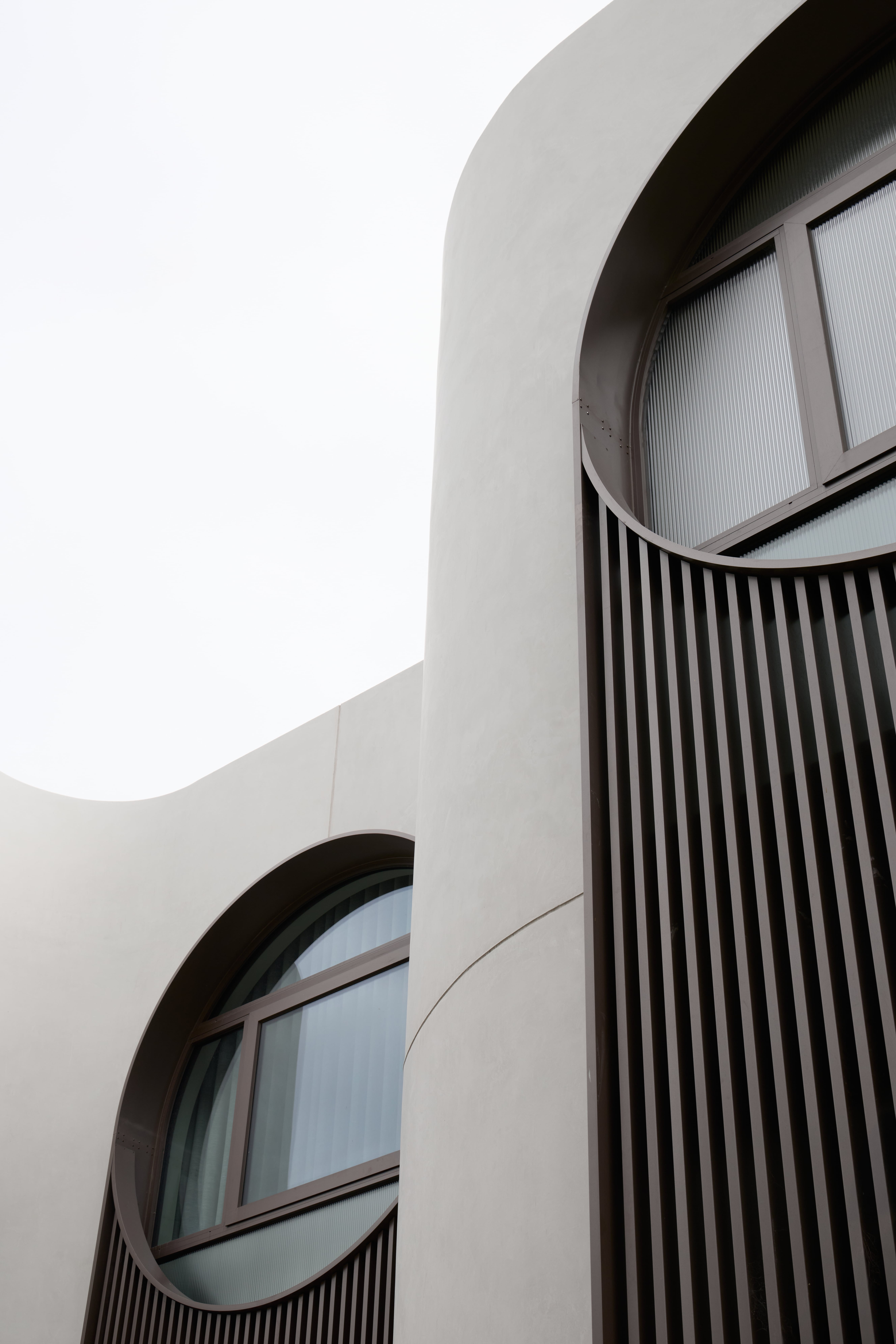 Tucked within Kew’s verdant streetscape, this contemporary home is a study in sculptural form, light, and materiality. Defined by its fluid architectural language, the residence unfolds across three levels, where curving white façades, with vertical metal accents, shift with the changing daylight. Expansive arched glazing blurs the line between indoors and out, immersing the interiors in natural light and garden views.