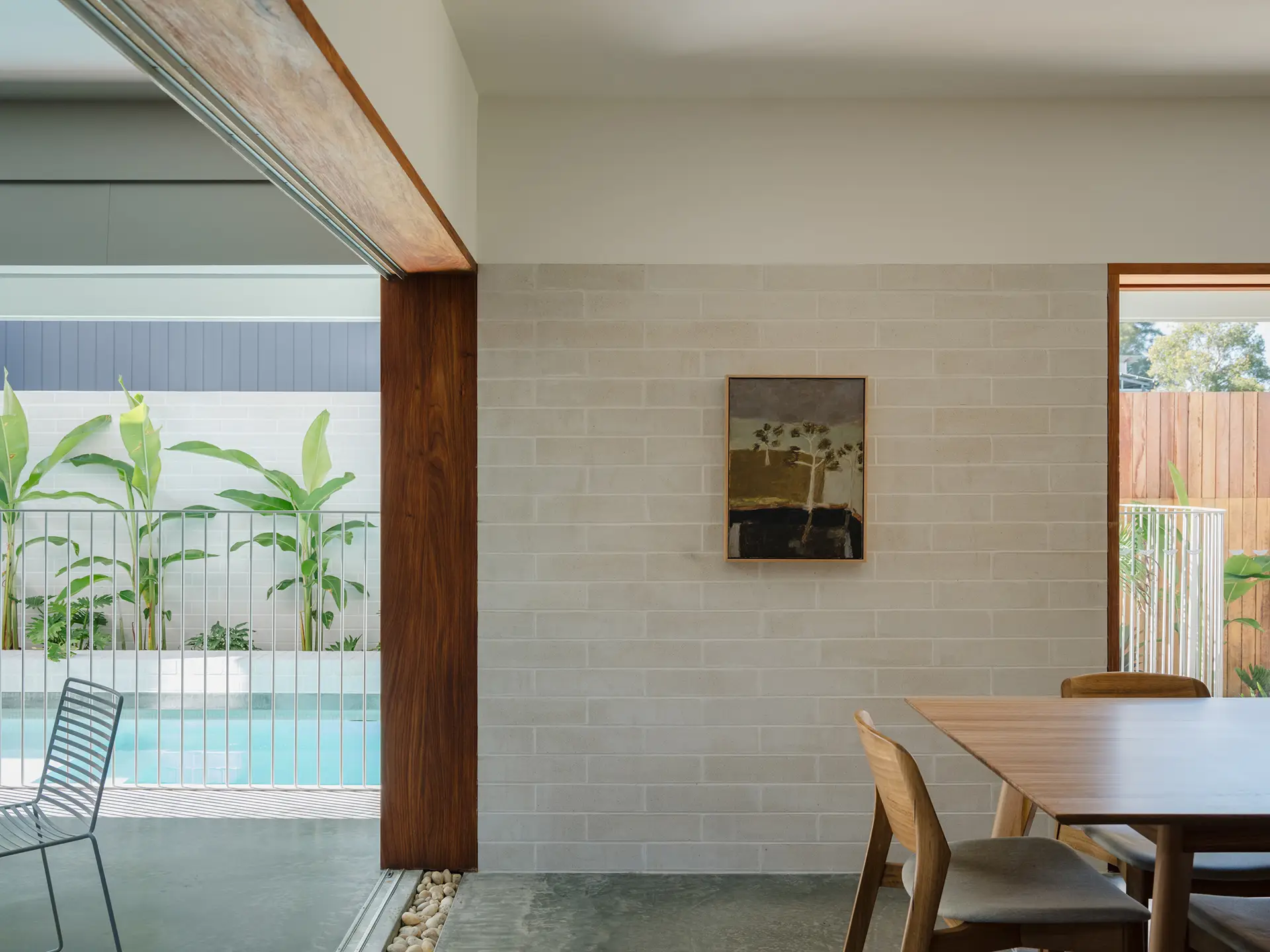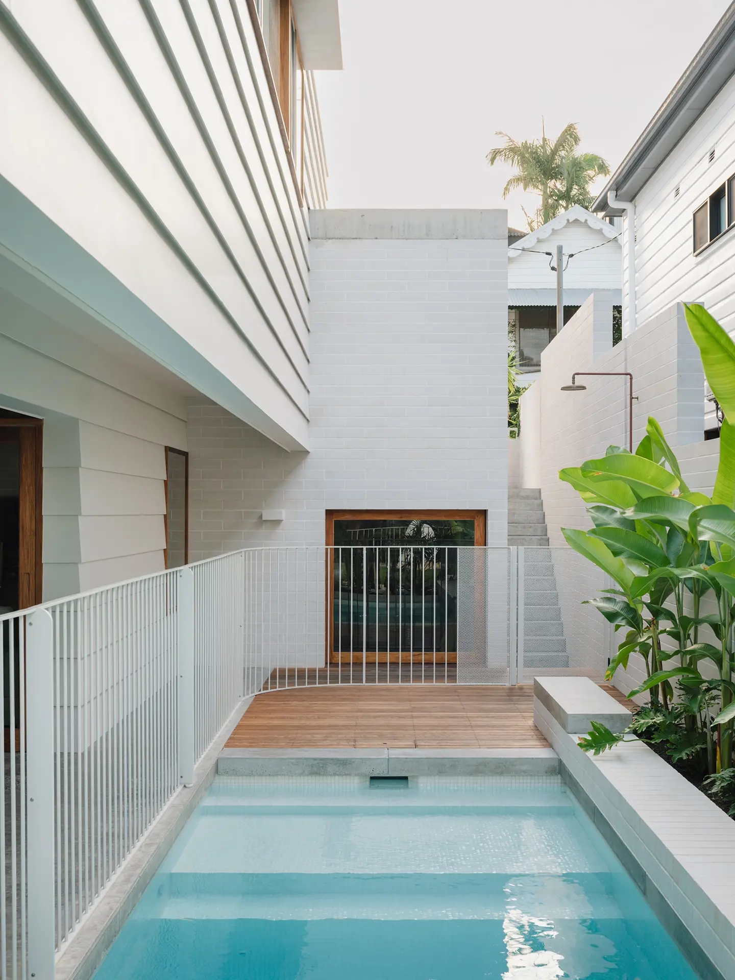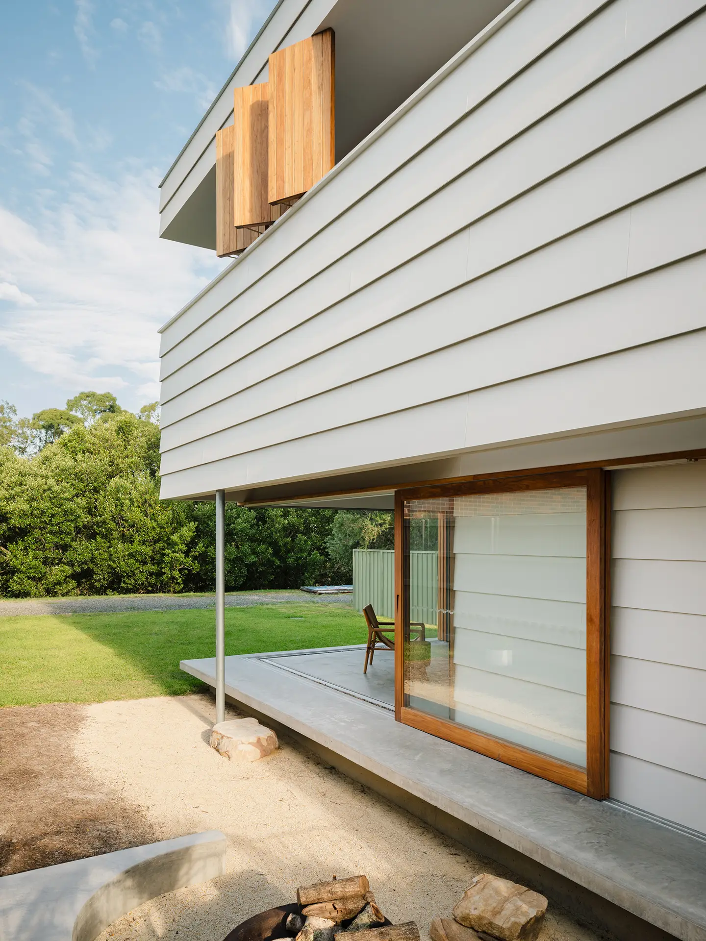 Throsby House is a reinterpretation of the original cottages which define the neighbourhood’s built character with exaggerated weatherboards stacked into a familiar but novel stratum on the site for a young family of four. In comparison to the existing cottages however, this project reappraises its connection to place and ground: negotiating a dramatic change of level on the site to ground the living spaces in garden and the landscape of Throsby Creek beyond.