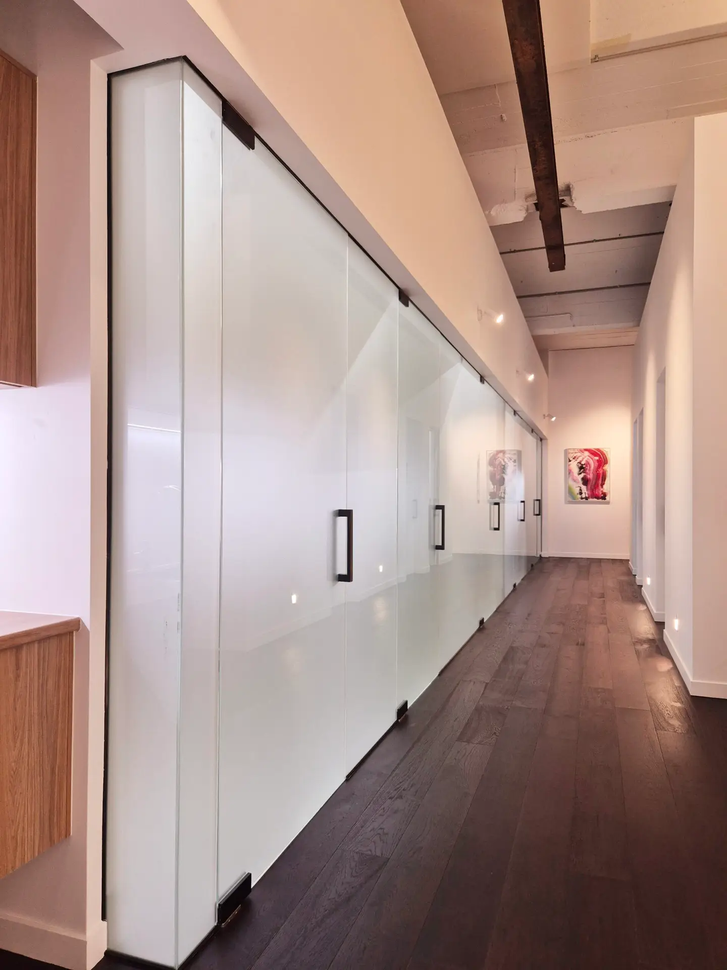The design concept mirrors a glowing light box against a solid box, wet against dry areas. Seamless detailing of glass provides reflective surfaces and an illuminated corridor space that not only functions as the primary circulation spine but displays a private art collection layering in function, complementing and bolstering the primary function of a plastic surgery consultancy and encapsulating the philsophy of aesthetics. The reflections of human and building skin and form are key elements.
