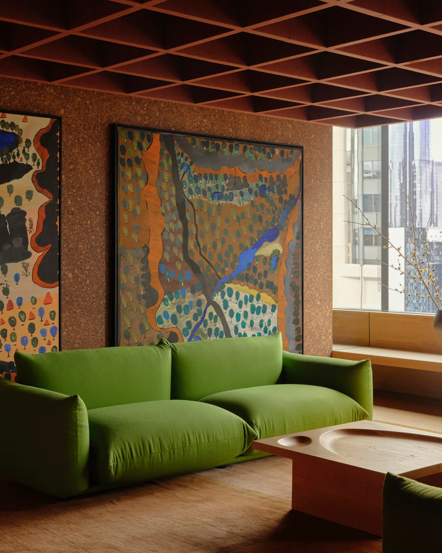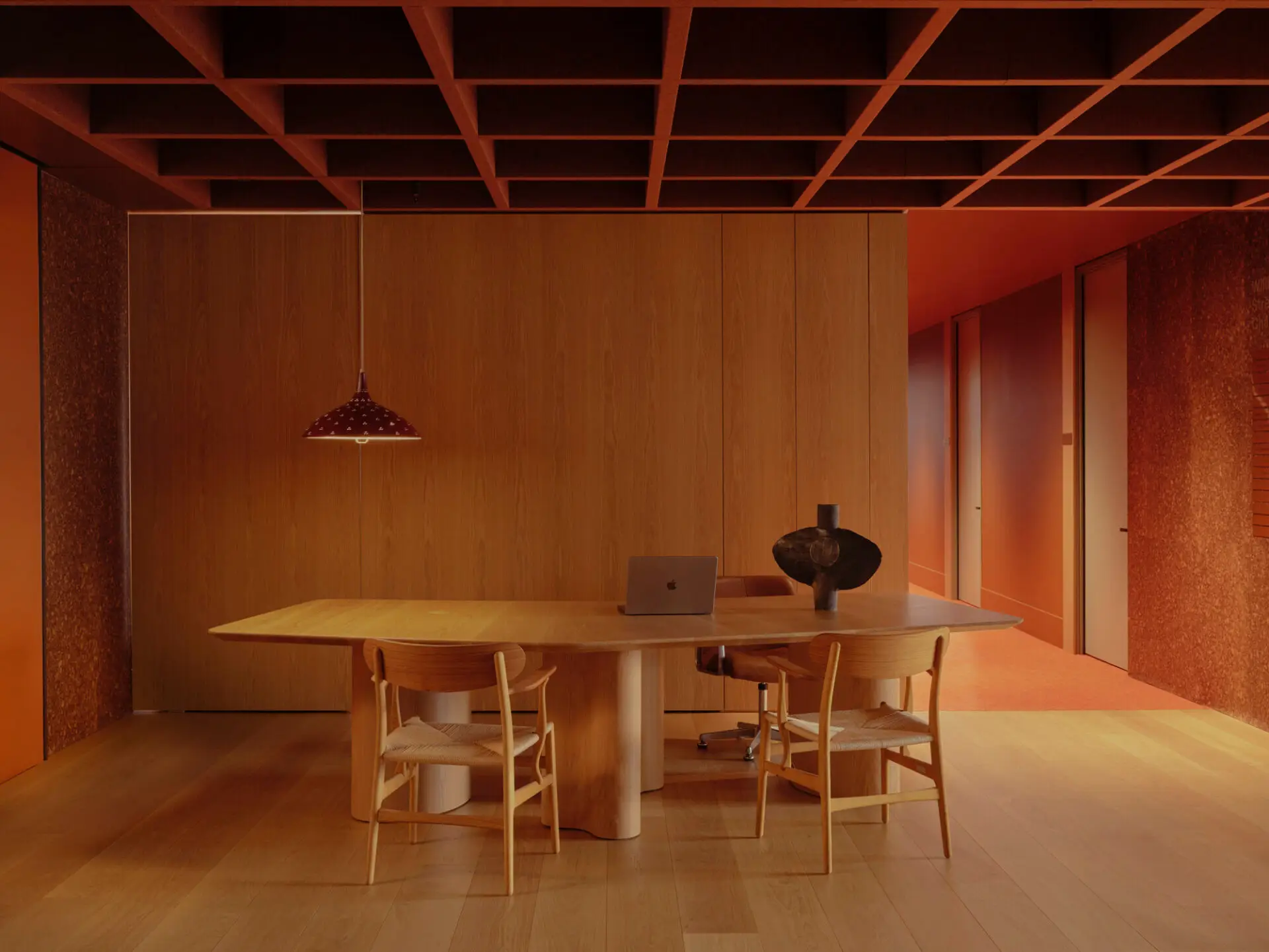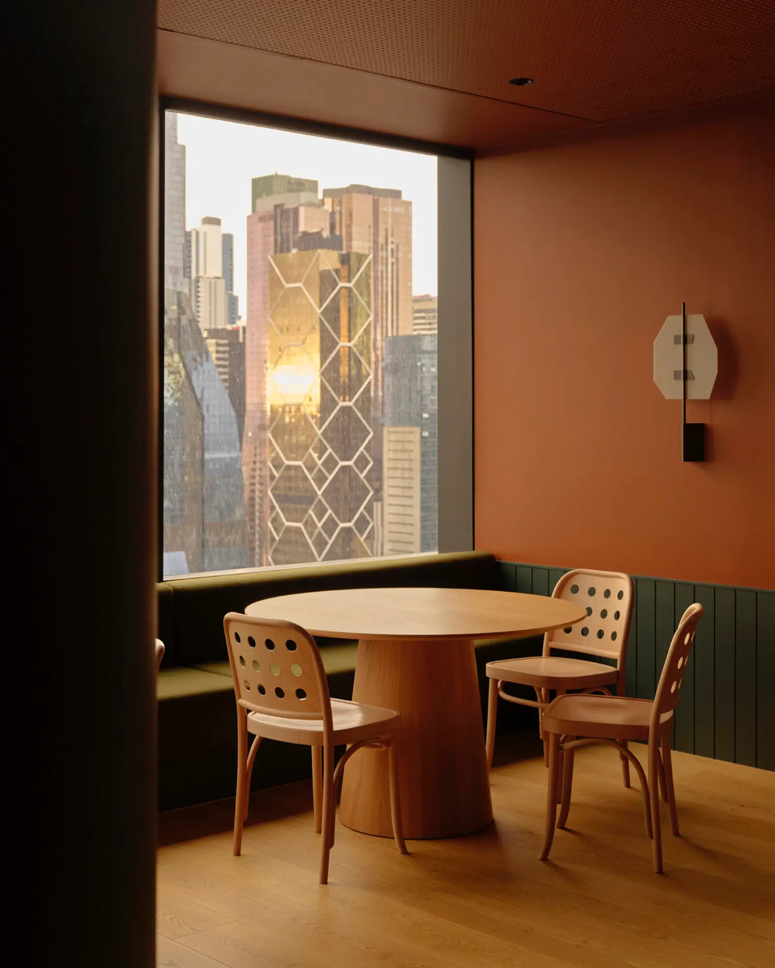 Our underlying approach was to soften the corporate edge of the space, stepping away from the conventional projection of the law as expensive, prestigious and stuffy, to make a space providing calm, softness and even a sense of refuge. Manipulating the immutable requirements of regulations, acoustics and technical infrastructure, we deployed a warm and textural material palette and privileged privacy, natural light penetration and domestic comfort.