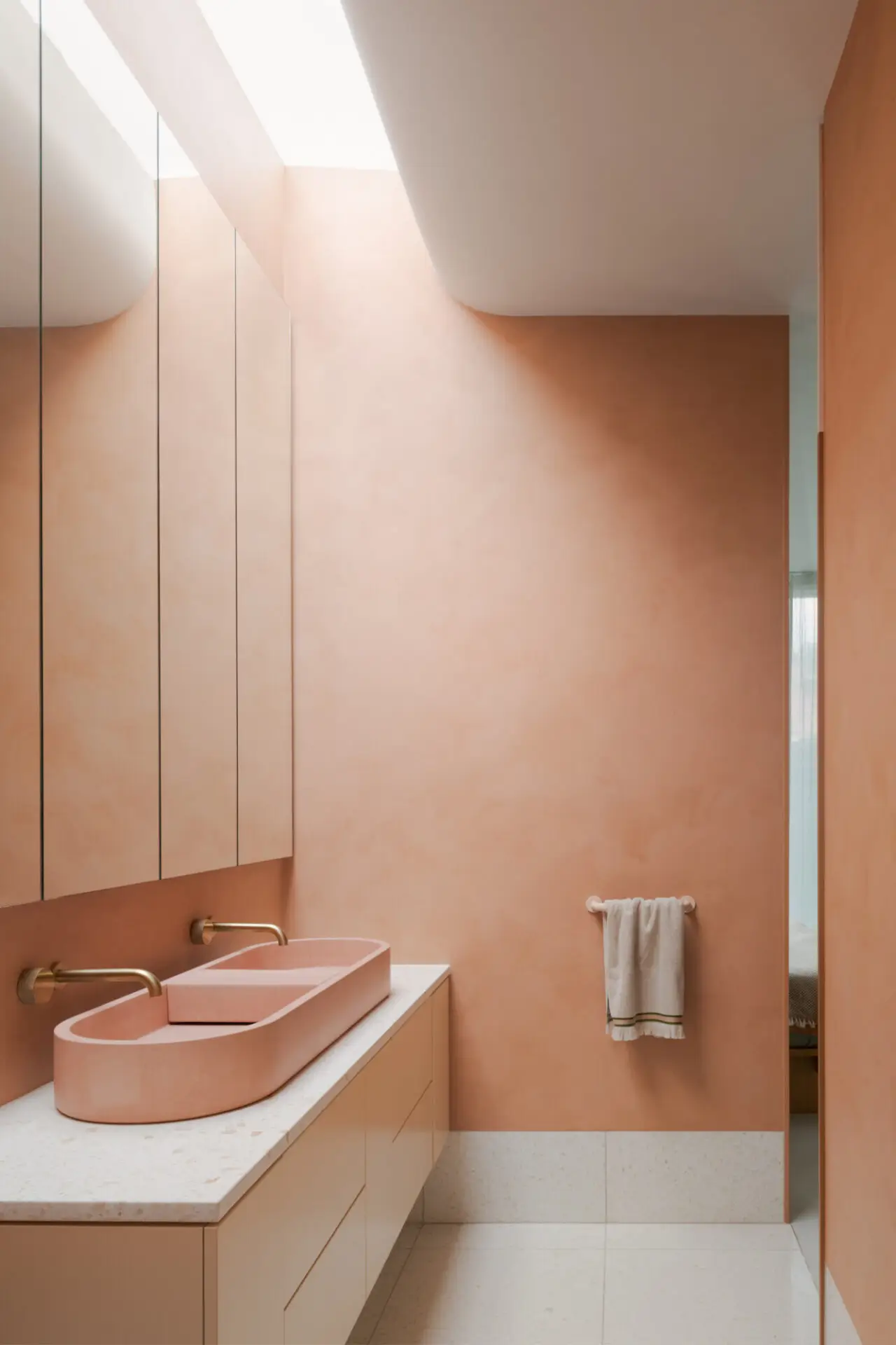 A Catalan-inspired brick barrel vault defines the living space, rising to 5.6 metres and introducing scale, spatial drama and shifting light. The vault is constructed in dry-pressed brick, its geometry and craftsmanship a contemporary marvel of traditional techniques.