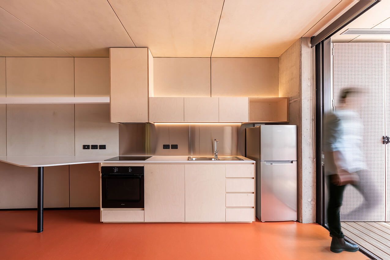 Rising five stories above an underused concrete podium covering two levels of carparking, Y2I reclaims wasted urban space and transforms it into a vibrant, activated contribution to the city. Embraced by the warmth of the custom LIMINAL – orange perforated screening, the housing hub presents a city ‘marker’ within the greater urban context.