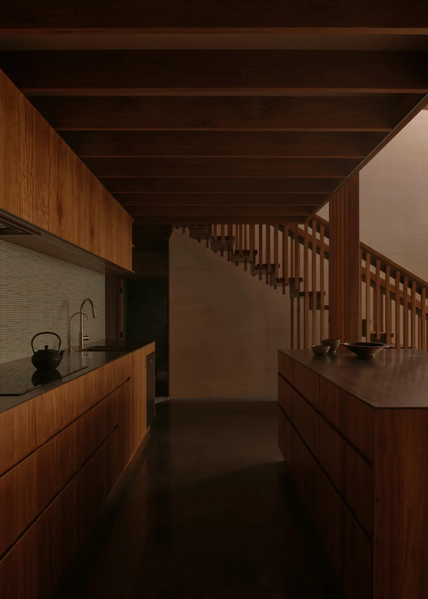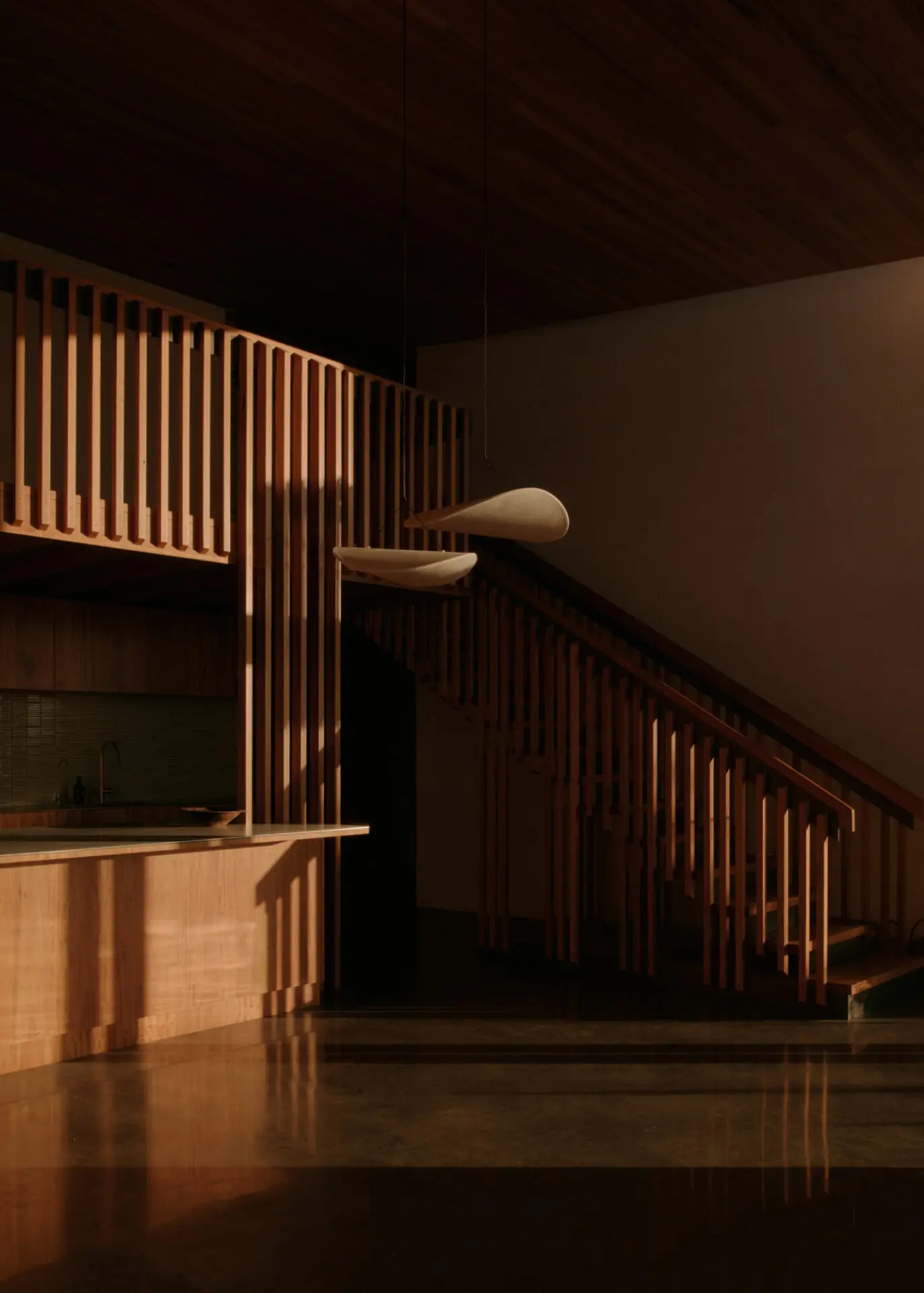 This project nods to the calamity of those bushfires, anchoring itself into the shale and granite bed of the site. An elegant skillion roof transitions the form down the steep site, allowing for the robust brick shell to express the stretched north and south elevations, protecting from the prevailing weather patterns and the high bushfire risk, whilst optimising the buildings thermal comfort. The tessellating tones of the dry pressed bricks soften the building within the harsh and rocky embankment, while Earthy warm tones and sandy speckled textures are grounded yet distinct with the natural context. This home celebrates a raw and simple harmony which encapsulates a place for relaxing, relishing and slowing down as a collective family