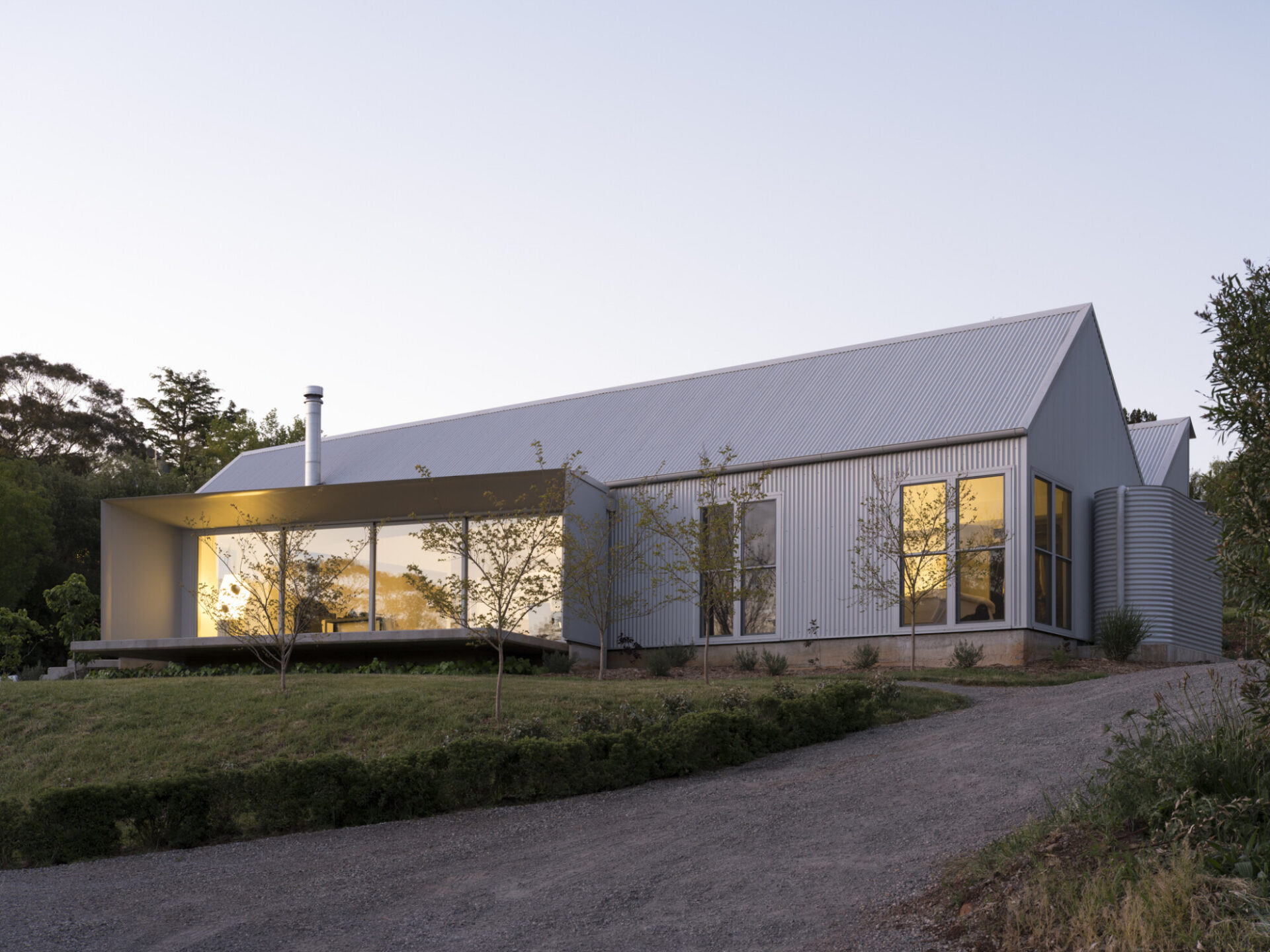 Behind the historic building extends a jet black pavilion of steel and glass a new sitting and dining space, designed with simplicity of form and structure. Guests can sit in comfort and look out over the established garden, toward the historic Moss Vale railway bridge and to the roofscape of the town beyond.