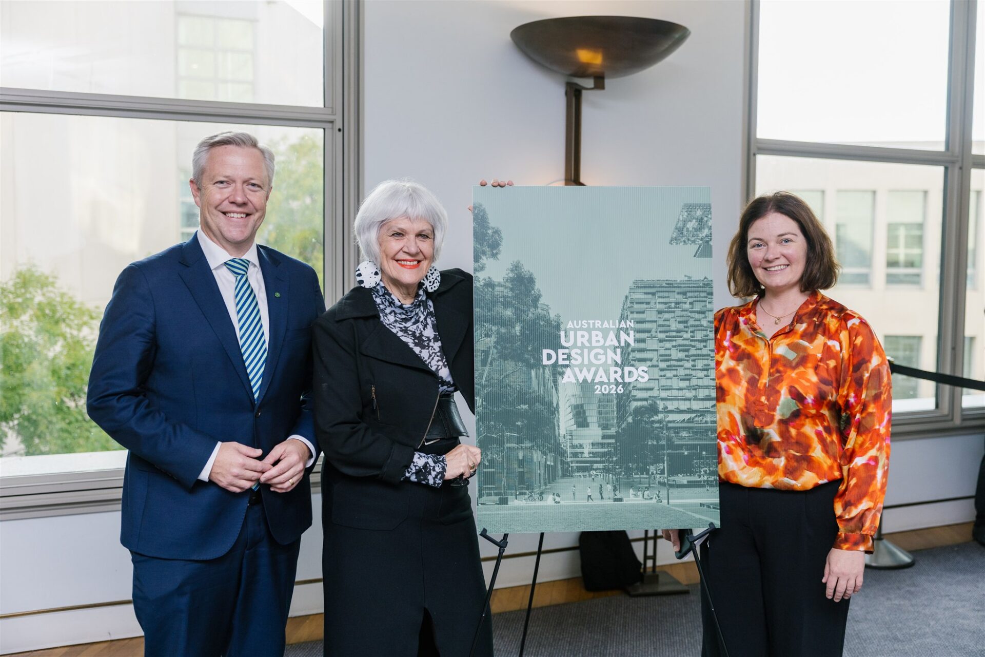 The 2026 Awards program attracted over 80 entries spanning the four categories newly established in 2025: Built Outcomes, Research & Advocacy, Strategic Design & Policy and Urban Design Champions which recognises exceptional individuals.