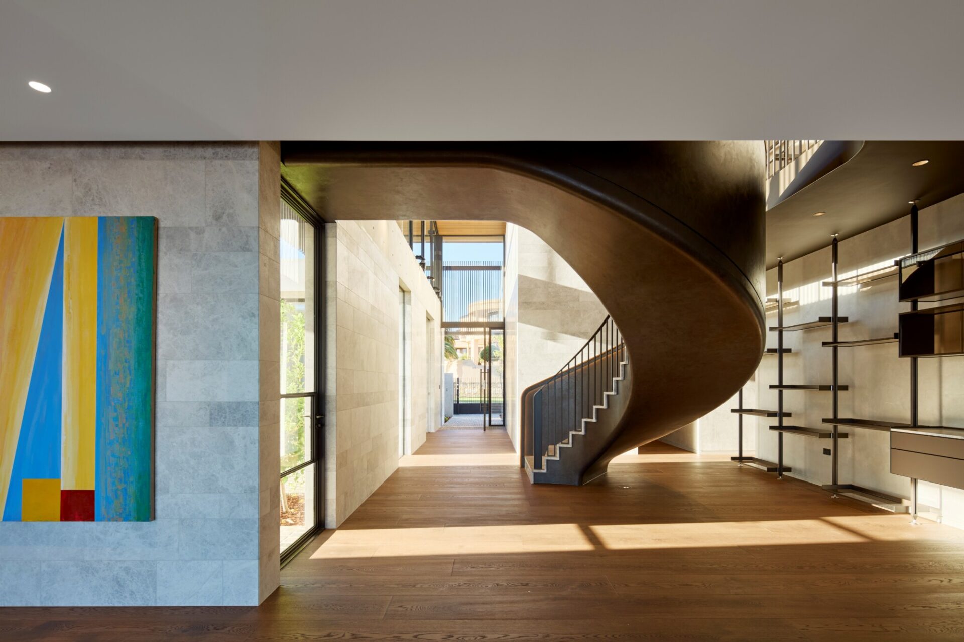 A sloping site led to a split level home connected by a series of ramps, weaving various interior and exterior spaces into a cohesive whole.