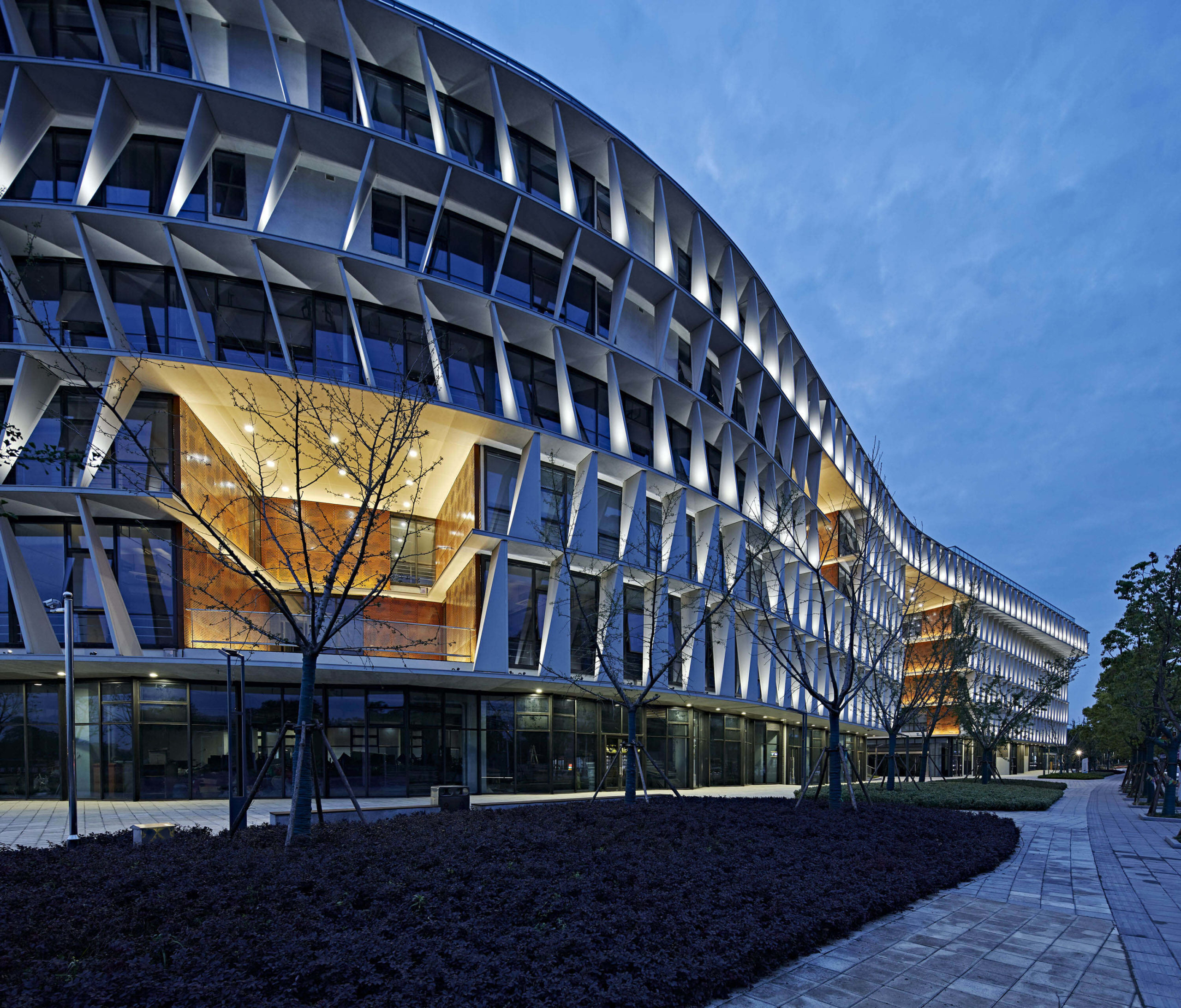 Science – The façade consists of a series of thin concrete overhangs which form a platform featuring a series of folded, perforated metal sails that respond to the changing façade orientations. The outcome is a well ventilated and naturally lit building, with reduced energy consumption and high amenity for both staff and visitors.