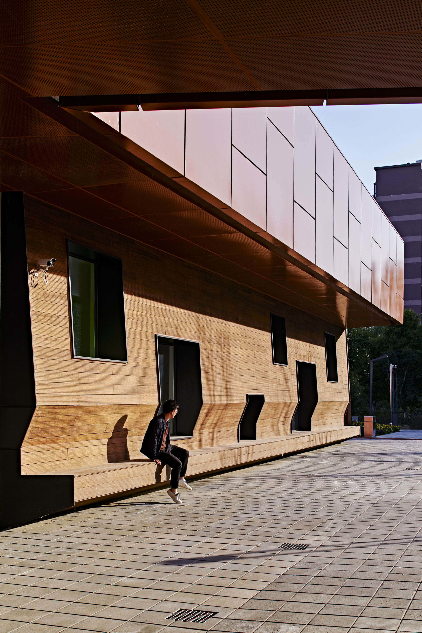 Mixed Programs – Pukou Community Centre houses a collection of mixed programs, including active-edge retail, a 104-room hotel, plus office space in the middle storey, a pre-school in the attic, and finally a community centre with swimming pool and auditorium in the courtyard.