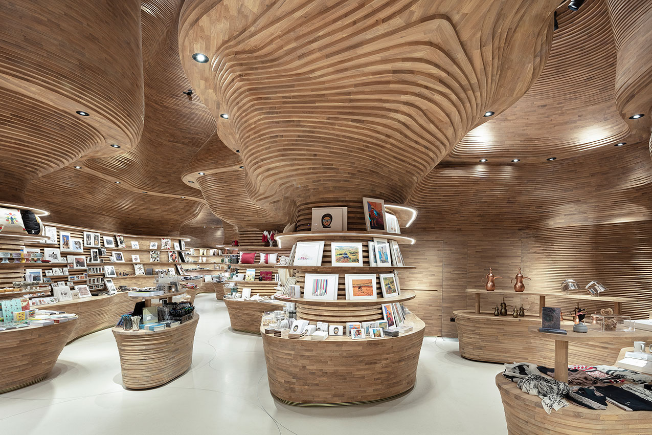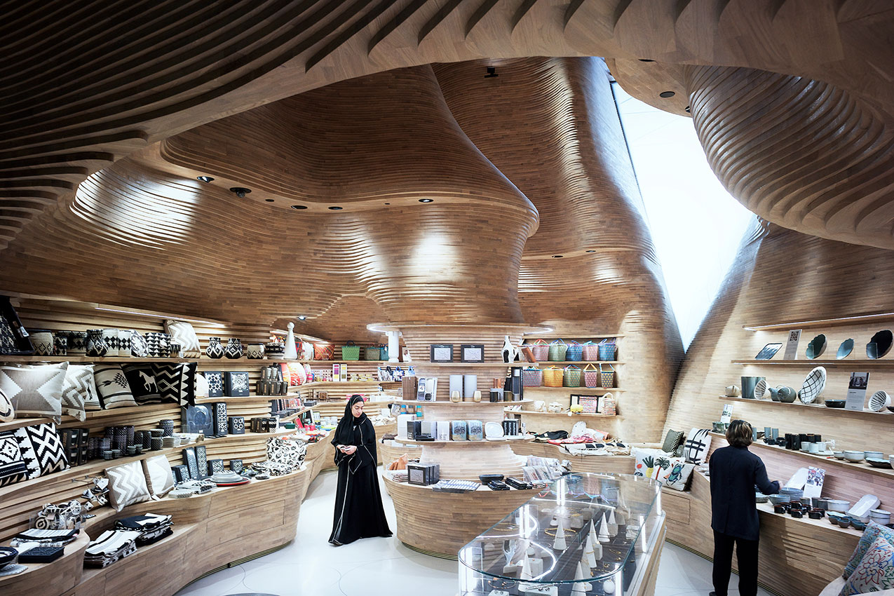 Inspired by Dahl Al Misfir (Cave of Light), the National Museum of Qatar Gift Shops is characterised by undulating cavernous walls.