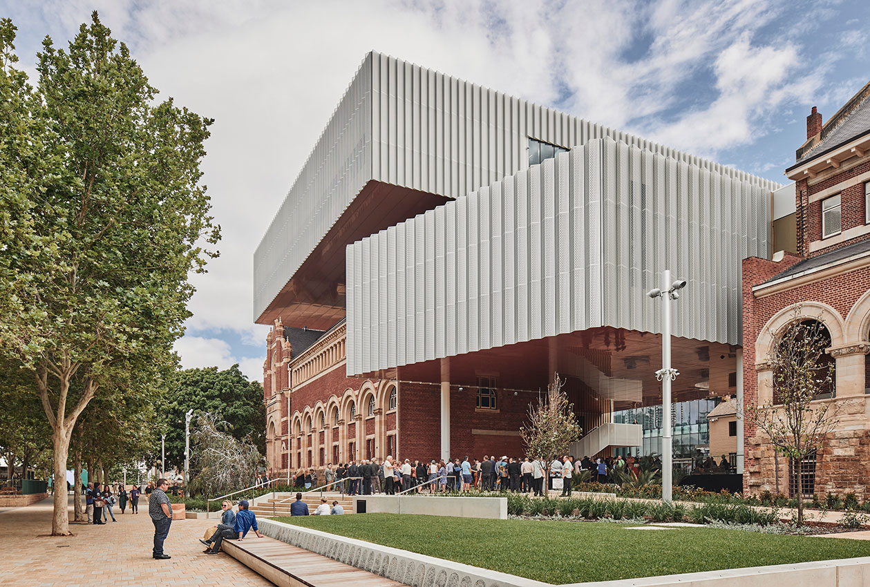 WA Museum Boola Bardip at Perth’s Cultural Centre, designed in joint venture by international design practices Hassell + OMA, has been conceived as a ‘collection of stories’ about Western Australia’s diversity, rich history, and contemporary culture. Heritage buildings and new volumes have been connected to offer a variety of curatorial possibilities, and to create the sheltered, outdoor ‘City Room’ for public cultural programs and daily activities, including a nine-day cultural festival celebrating the opening.