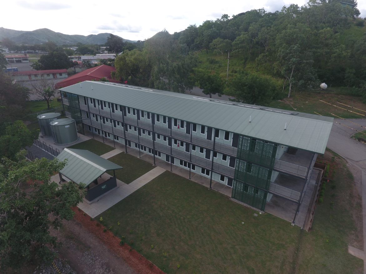 The building, previously condemned and earmarked to be demolished, was salvaged through rigiorous consultation and investigations. The building was reclassified as suitable for refurbishment and as a result become a “pilot project” to address the existing ageing building stock and lack of appropriate accommodation for the PNG Defence Force.