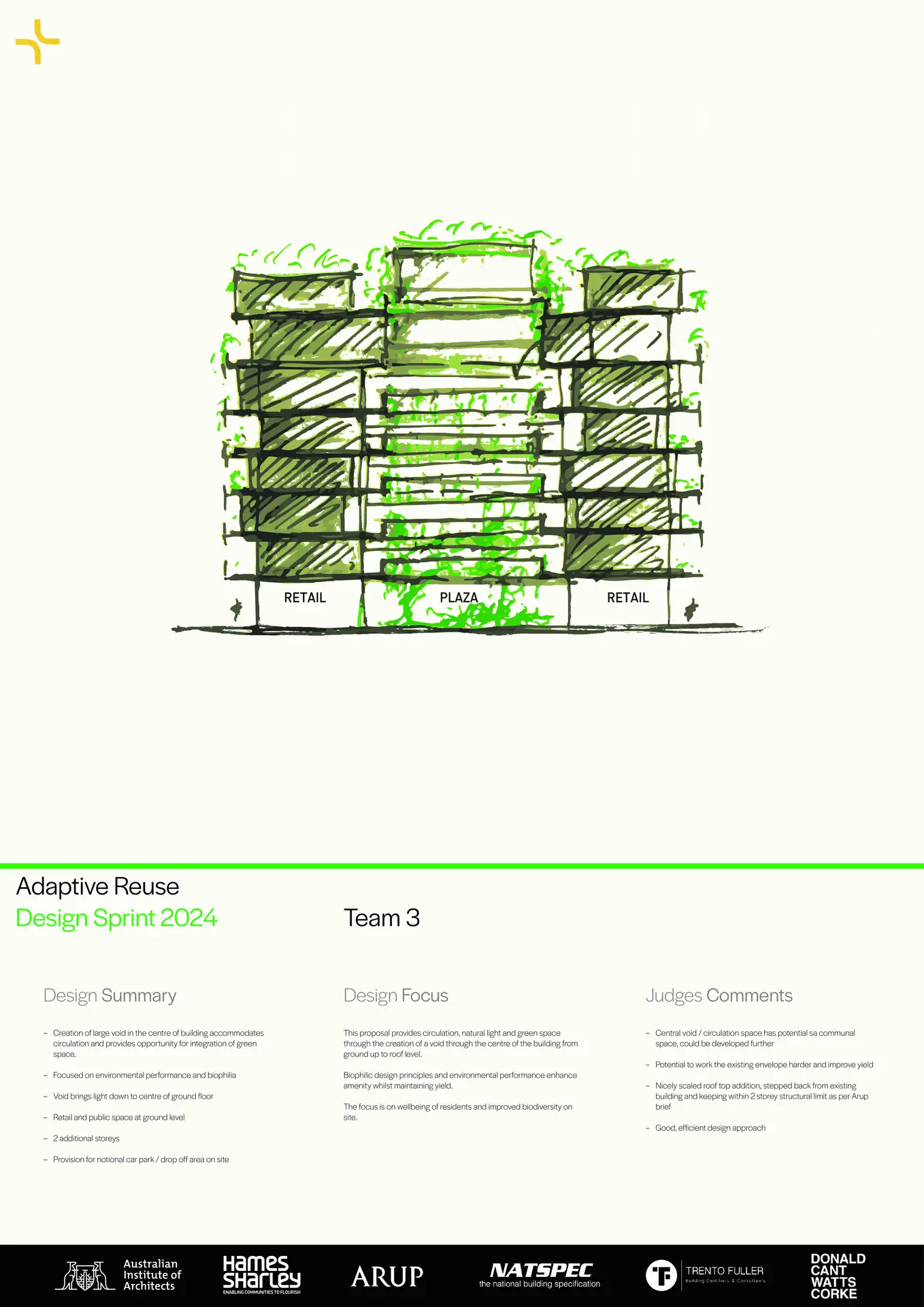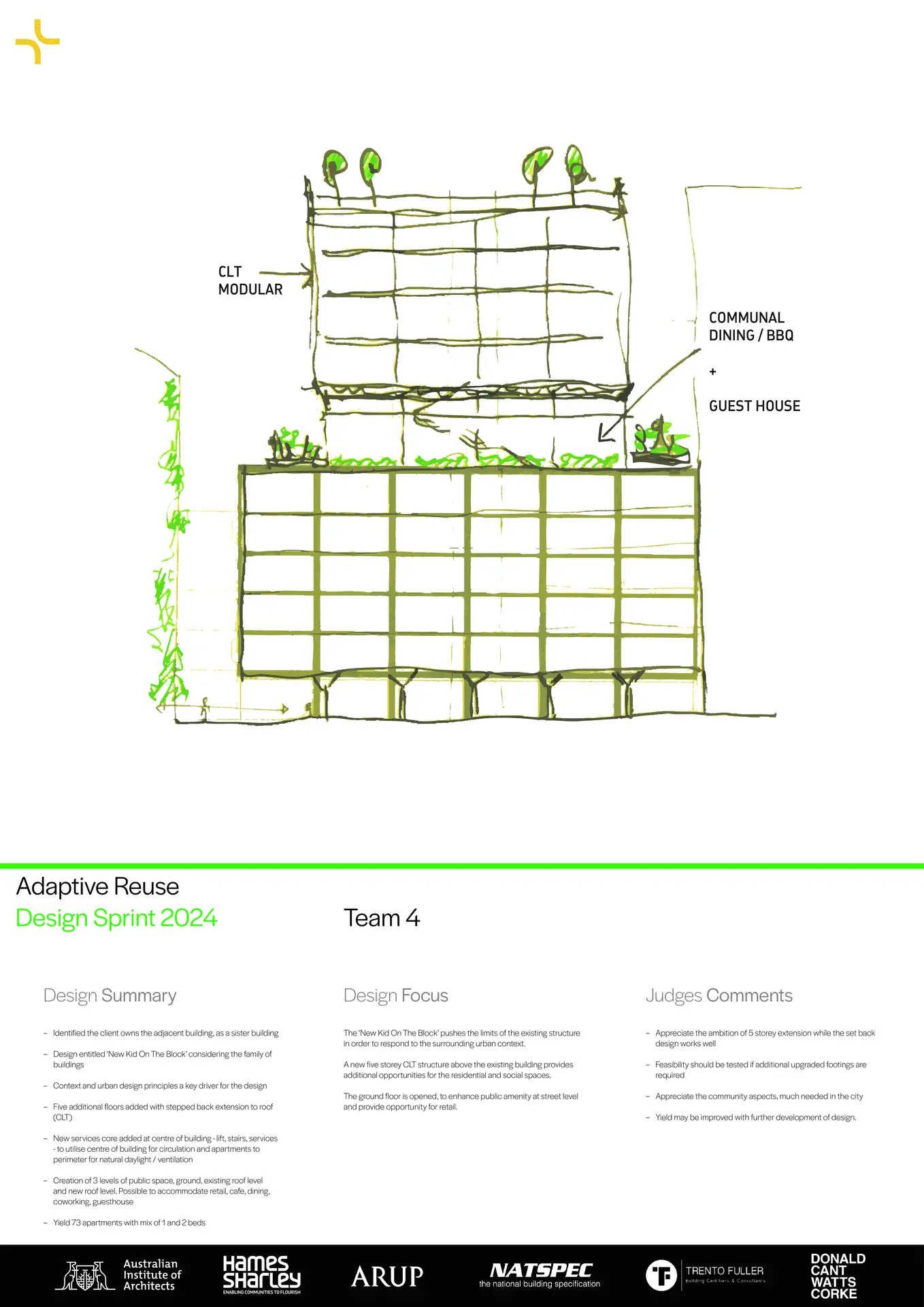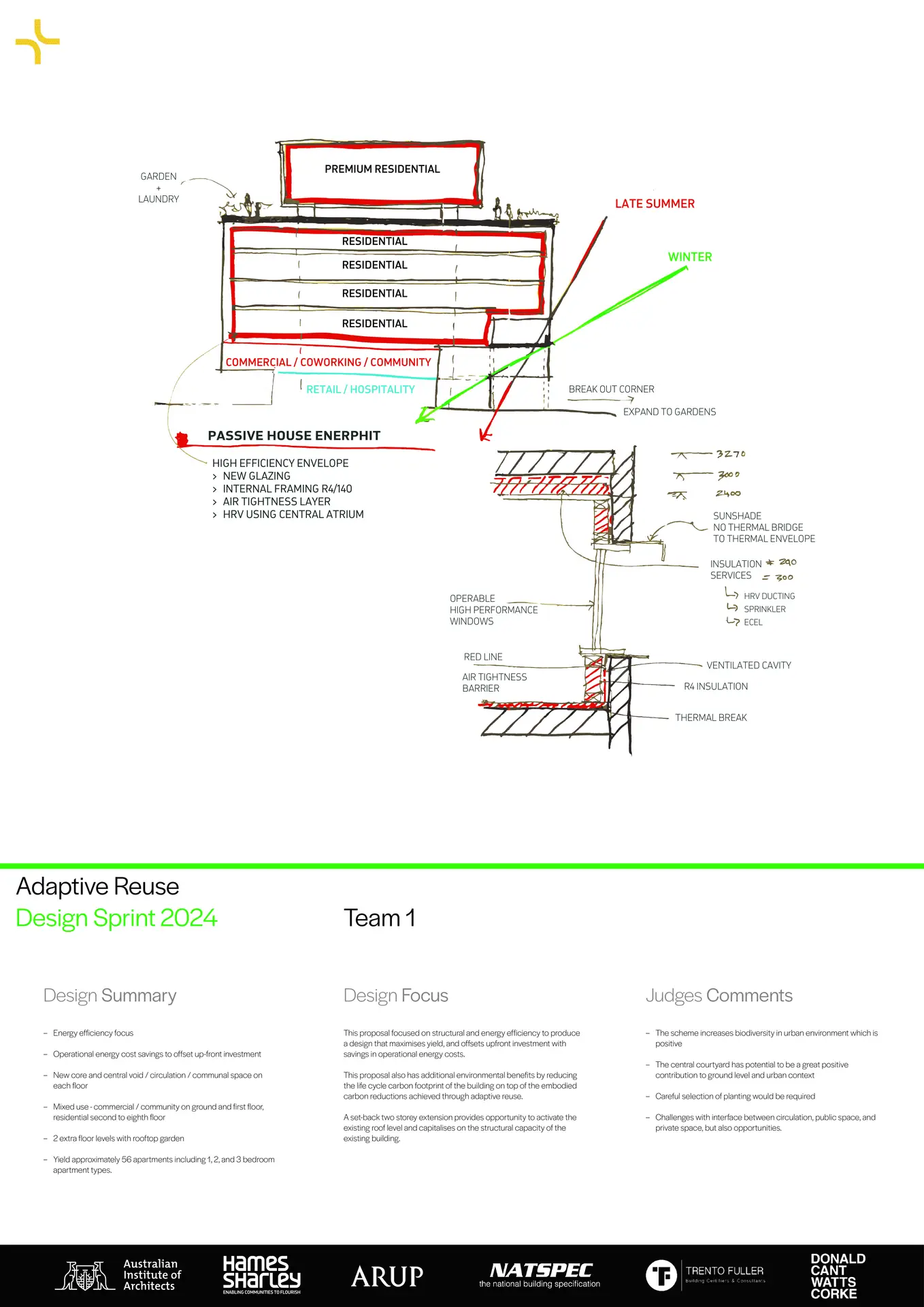 The Adaptive Reuse Design Sprint 2024 brought together South Australian architecture practitioners for an intensive, collaborative design challenge that explored the transformation of Adelaide’s underused CBD buildings into vibrant, sustainable housing solutions.